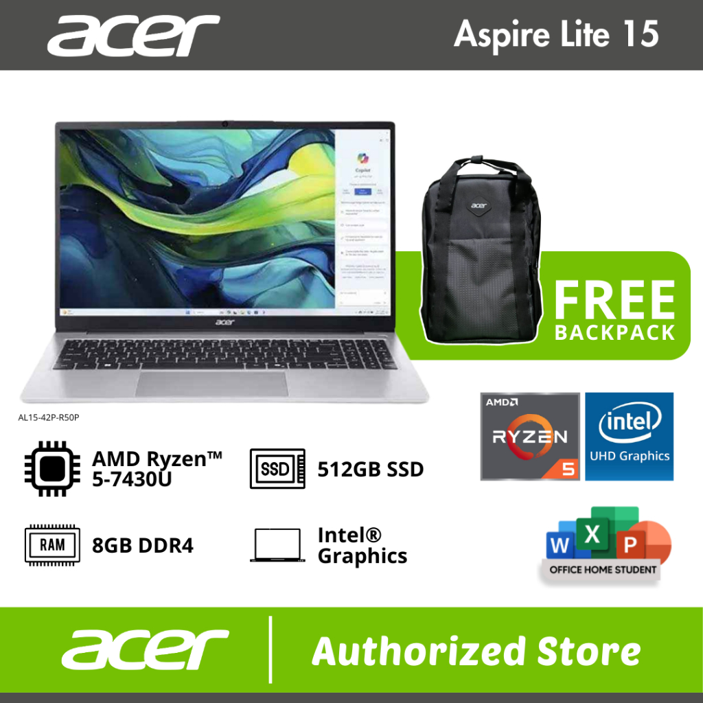 ACER ASPIRE LITE 15 AL15 42P R50P RYZEN 5 7430U 8GB 512GB SSD 15" IPS FHD W11H OH2024