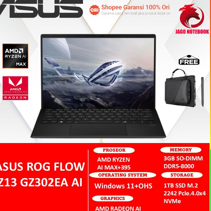ASUS ROG FLOW Z13 GZ302EA TOUCH RYZEN AI MAX+ 395 32GB 1TB W11+OHS 13.4 2.5K 180HZ PEN 2IN1 BLK -RZA86N6G-HM
