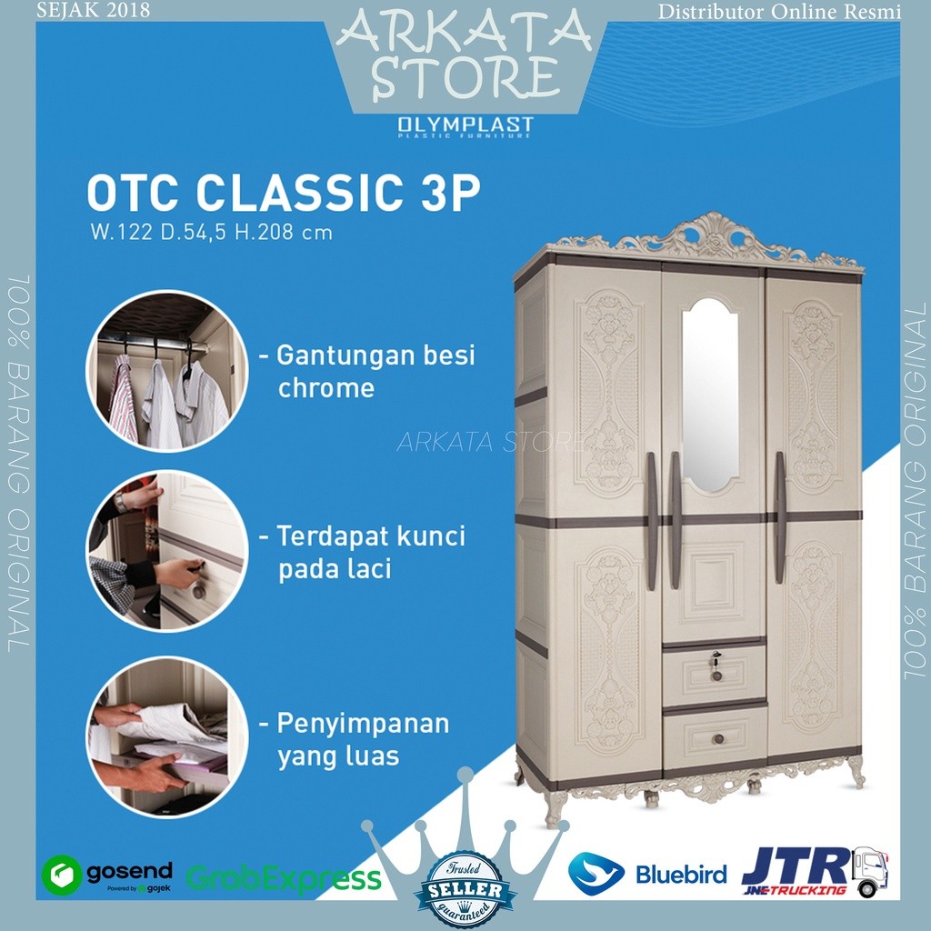 LEMARI PAKAIAN PLASTIK 3 PINTU CERMIN + LACI OLYMPLAST OTC 3PL - ST2 CLASSIC HANGER - GANTUNG - RAK / LEMARI PLASTIK 3P