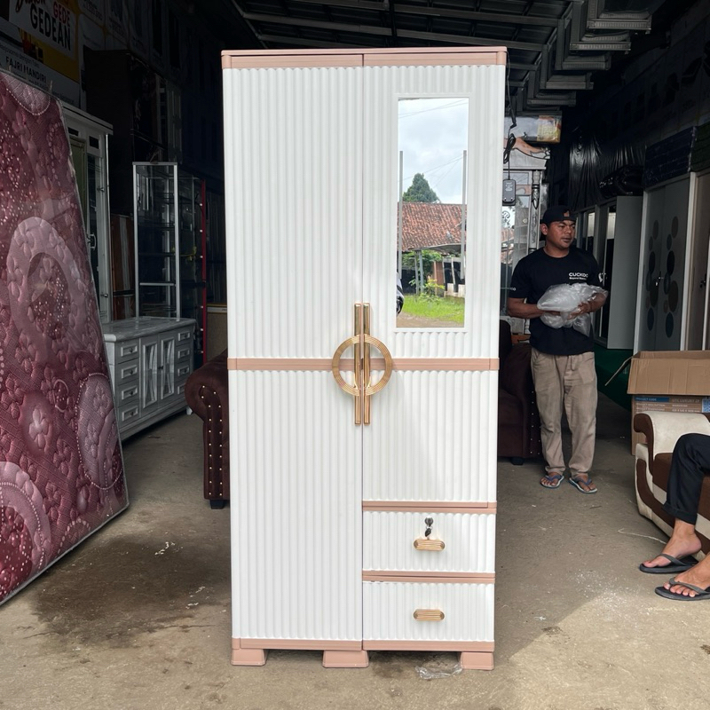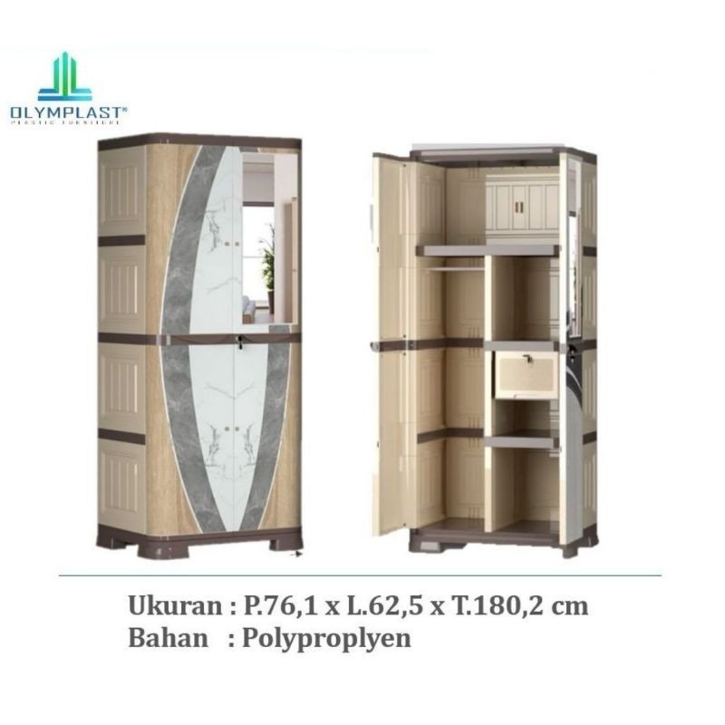 OTC 2P MODERN / SCOC 2P - LEMARI PLASTIK/ LEMARI PAKAIAN 2 PINTU CERMIN + LACI OLYMPLAST GANTUNG - HANGER - RAK / LEMARI 2P PLASTIK