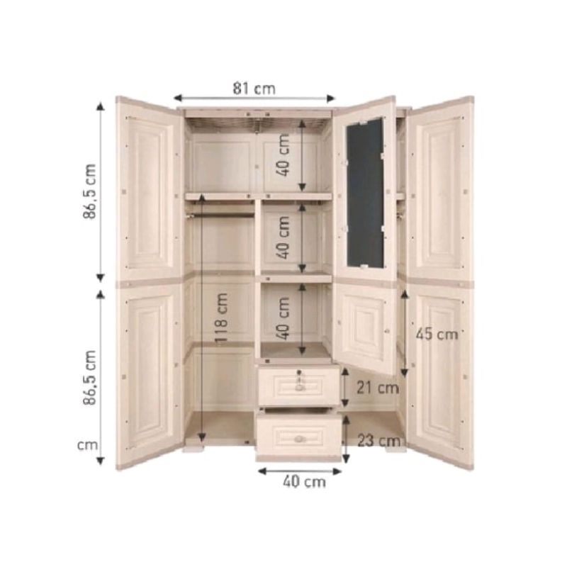 Lemari pakaian plastik modern minimalis baju olymplast 3 pintu - OTC ST MODERN/SCOC