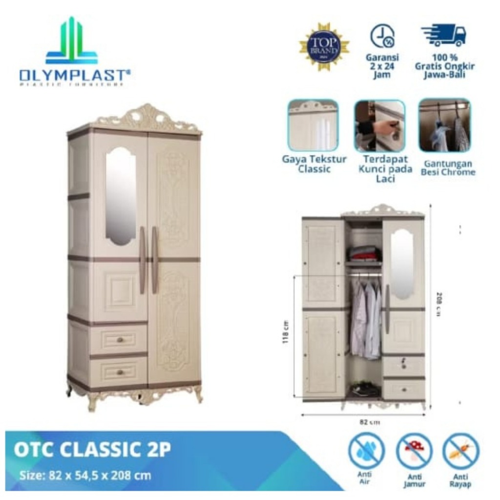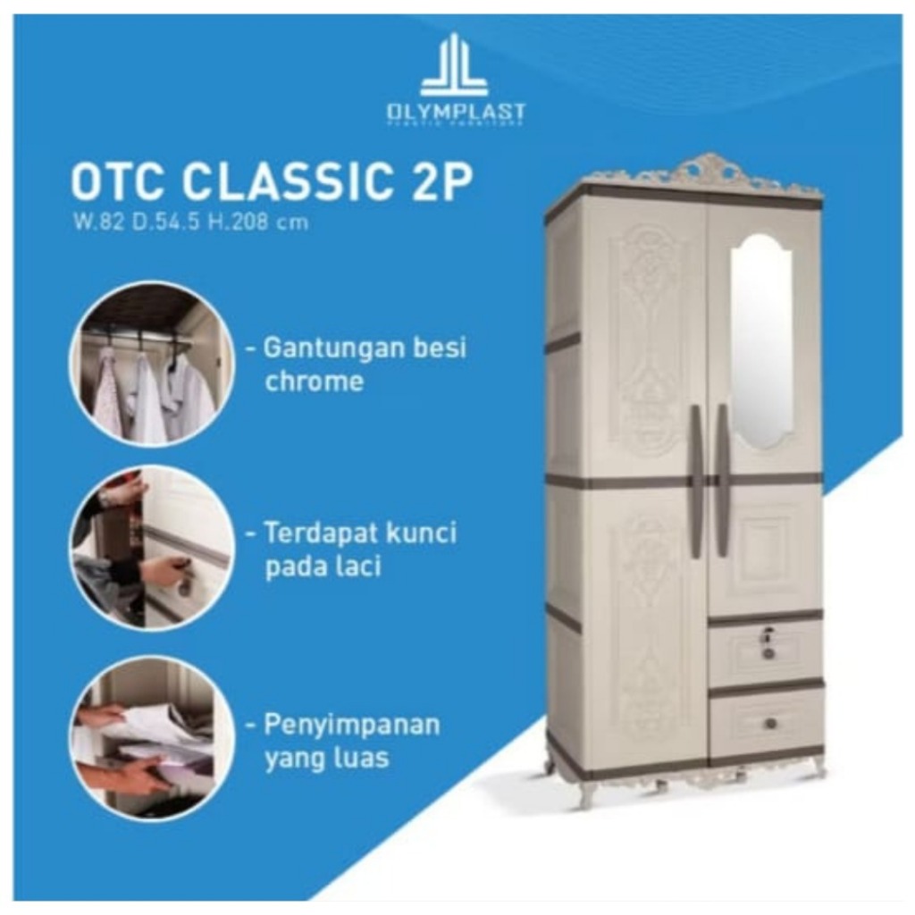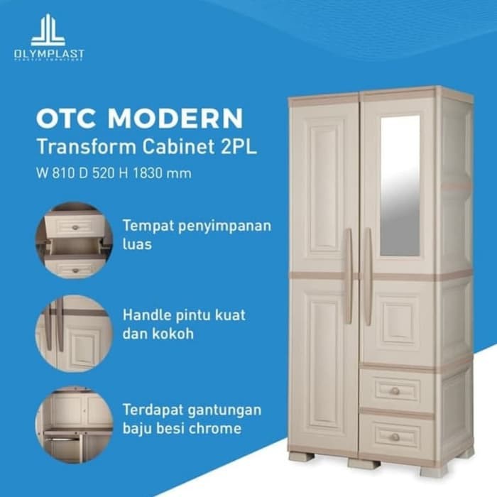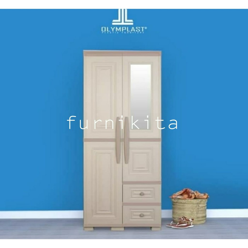 LEMARI PLASTIK 2 PINTU OLYMPLAST MODERN KACA LACI OTC 2PL