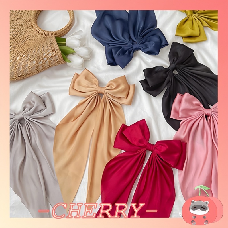DISKON 8.8 CHERRY S224 Jepit Rambut Pita Mewah Korea - Aksesoris Rambut Wanita Elegant dengan Pita Panjang Trendi