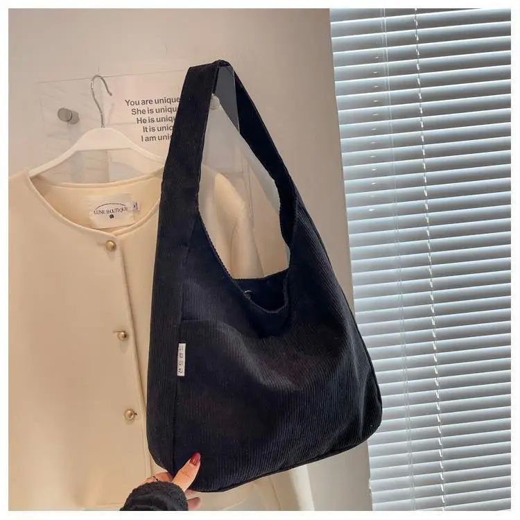 (LUNA) Tote Bag Corduroy Tas Bahu Tas Cewek Kapasitas Besar Muat Laptop 14 Inch