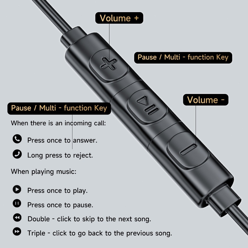 Earphone Ows Painless Headset Kabel Type C Bass 9D Nendang, Headphone Sport Tahan Keringat Tahan Air Dengan Mikrofon Hd,