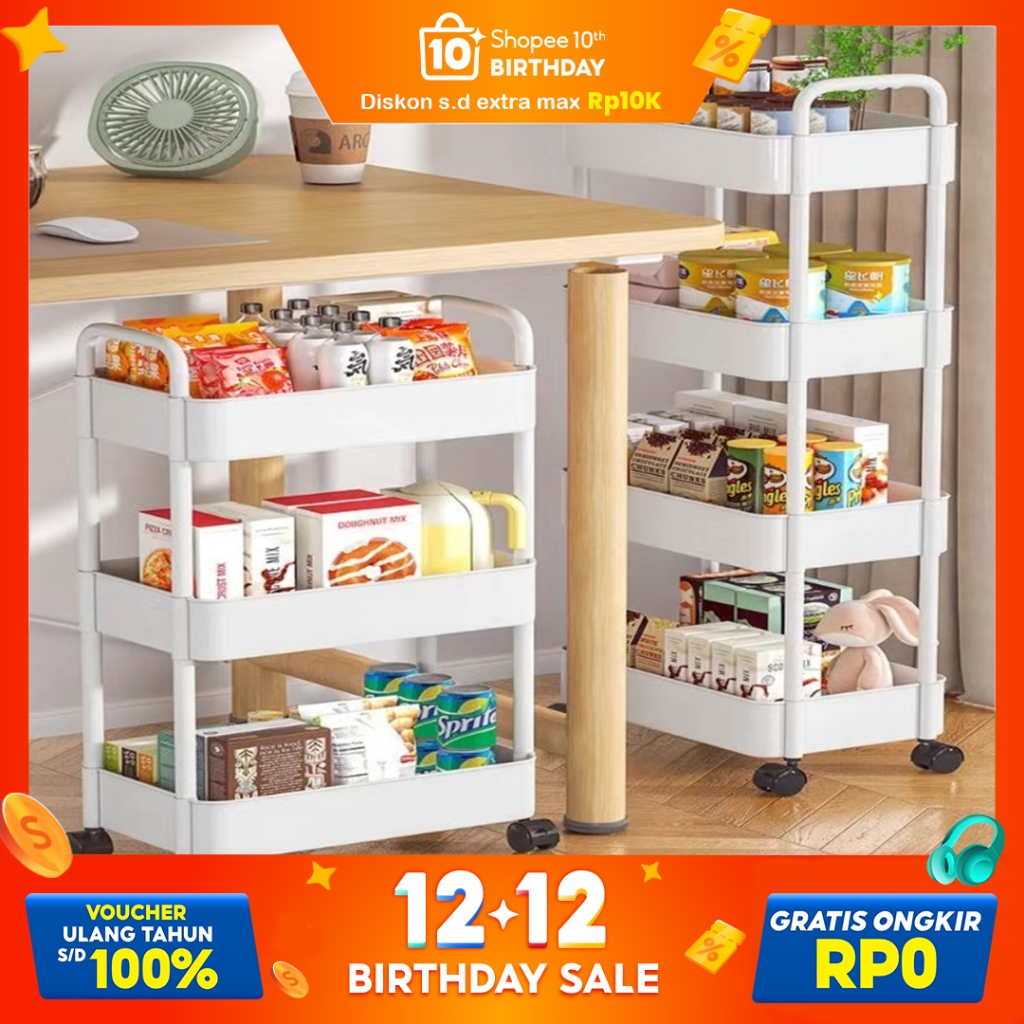 TidyGo Factory Outlet Rak Troli Susun Plastik Serbaguna Persegi Panjang 4 Susun Rak Dapur Rak Salon Penyimpanan Rak Toilet Kamar Mandi Dengan Pegangan