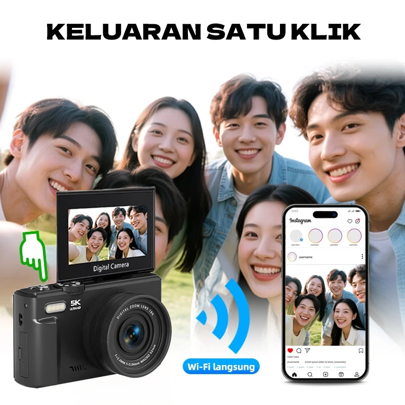 5K Wifi Kamera Digital 75Mp Digicam Dengan Layar Boleh Putar 180° Zoom 18X Dukungan Selfie Wifi Transfer Kamera Murah Re