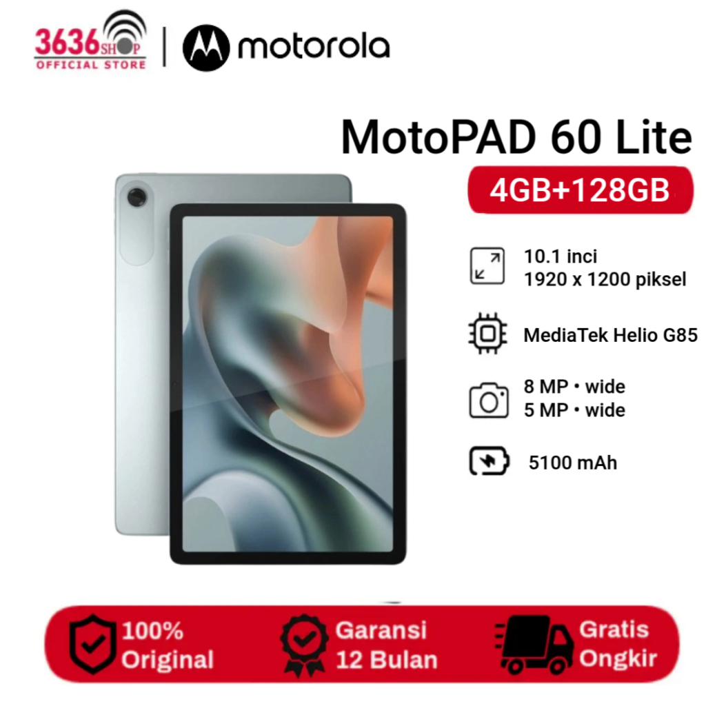 Motorola Moto Pad 60 Lite - 4GB+128GB - Helio G85 - 10.1 inch - 400nits - Dolby Atmos - 5100mAh Garansi Resmi 1 Tahun