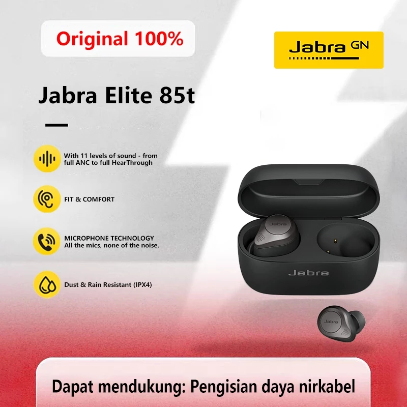 [100 PERSENOriginal] Jabra Elite 85t Wireless Bluetooth Headset Headphone Peredam Kebisingan Aktif Panggilan HD Gaming Bass Earbuds Robot Long Battery Life Jabra Elite 85t Headset