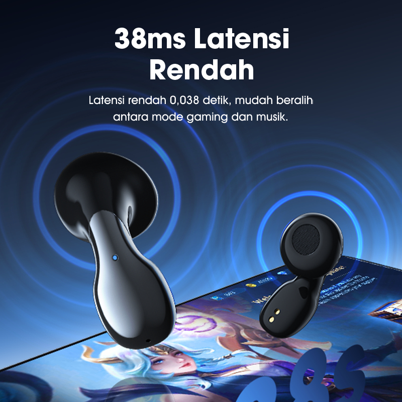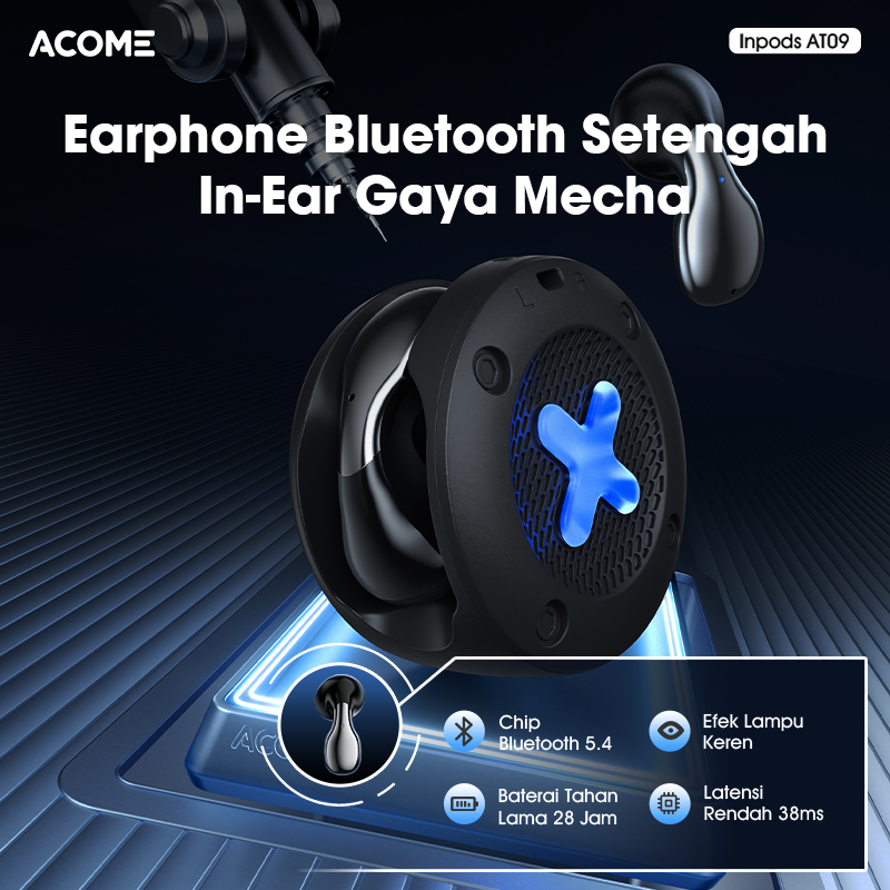Acome Tws Gaming At09 Earphone Earbuds Headset Bluetooth 5.4 Low Latency 38 Ms Ipx4 Waterproof Semi In-Ear Gaya Mecha -