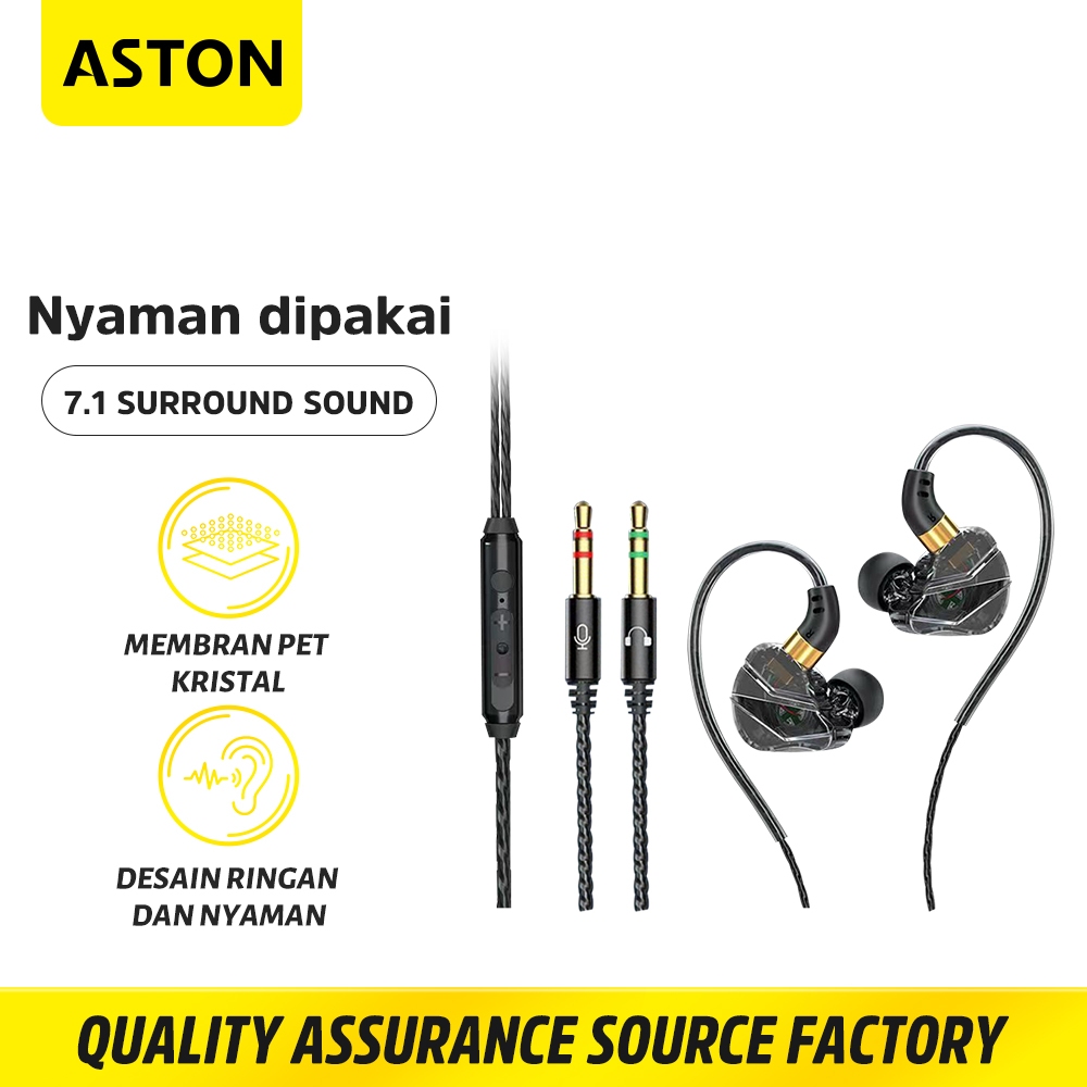 Aston Headset Gaming Music At-Mt138 Black Professional In-Ear 9D Bass Hifi Noise Cancelling Original