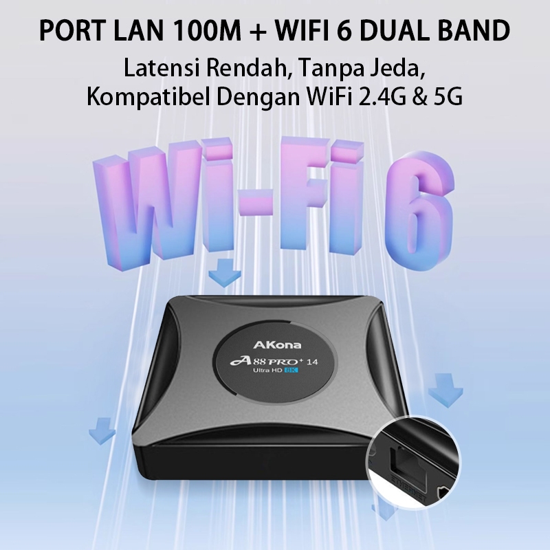 Akona Android Tv Box 8K Uhd Android 14 Os Set Top Box Stb Android Tv Voice Remote Control Ram 4Gb Rom 32Gb Wifi6 Usb3.0