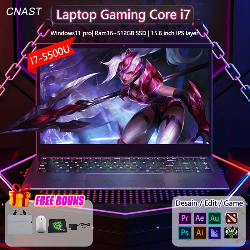 CNAST Laptop Intel Core i7 Gaming 16GB RAM 512GB SSD 15.6 inch untuk Programming baru Windows11