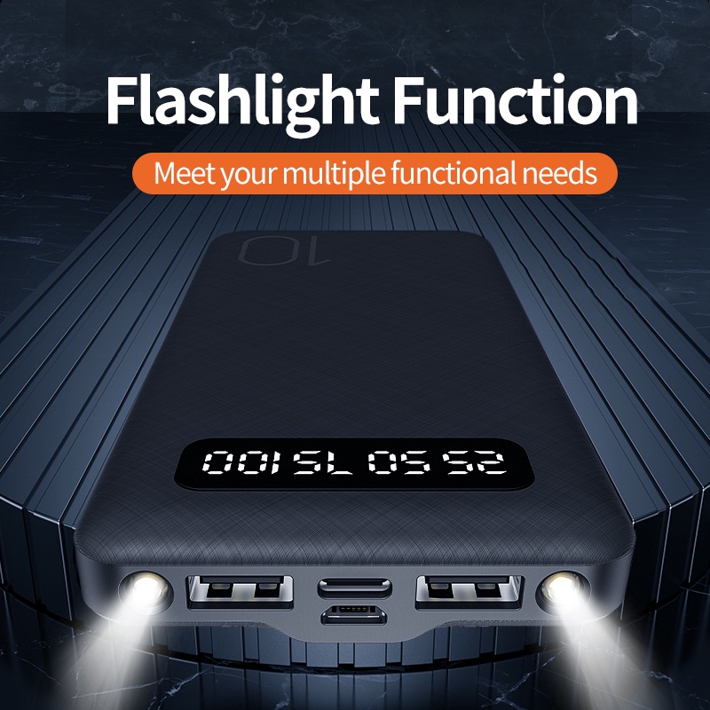 (Hot)Kivee Powerbank Fast Charging 10000 Mah Kv-Pt69 Power Bank Dual Usb Super Thin With Dua Lampu