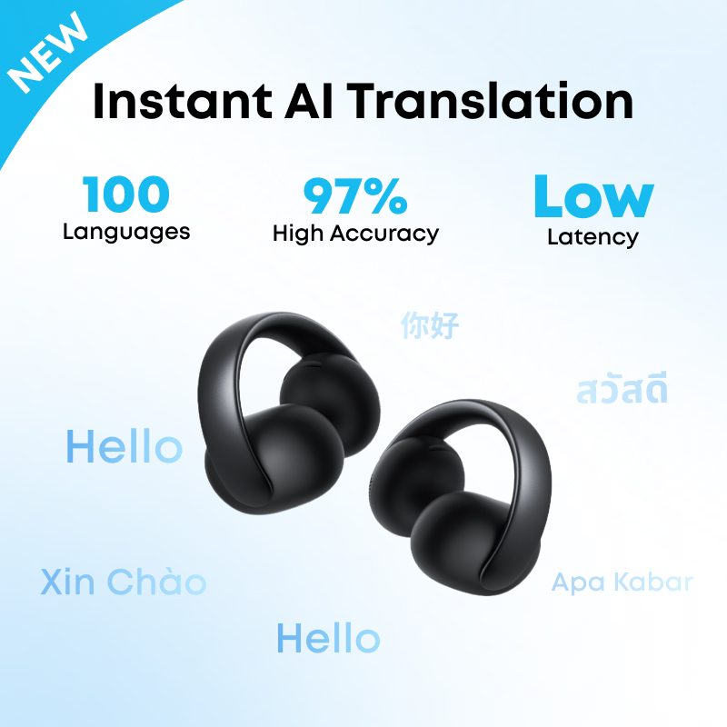Soundcore AeroClip by Anker, Open-Ear Earbuds, Clip-On Headphones, Adaptive Comfort, Clear Calls with 4 Mics and AI, Stable Fit, 12mm Drivers for Powerful Bass, Hi-Res, Open-Ring Design - A3388