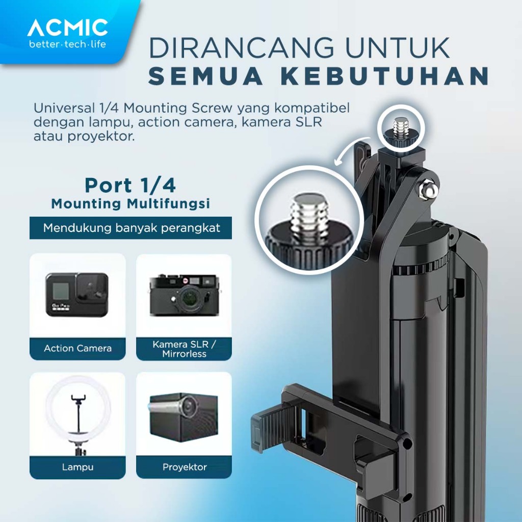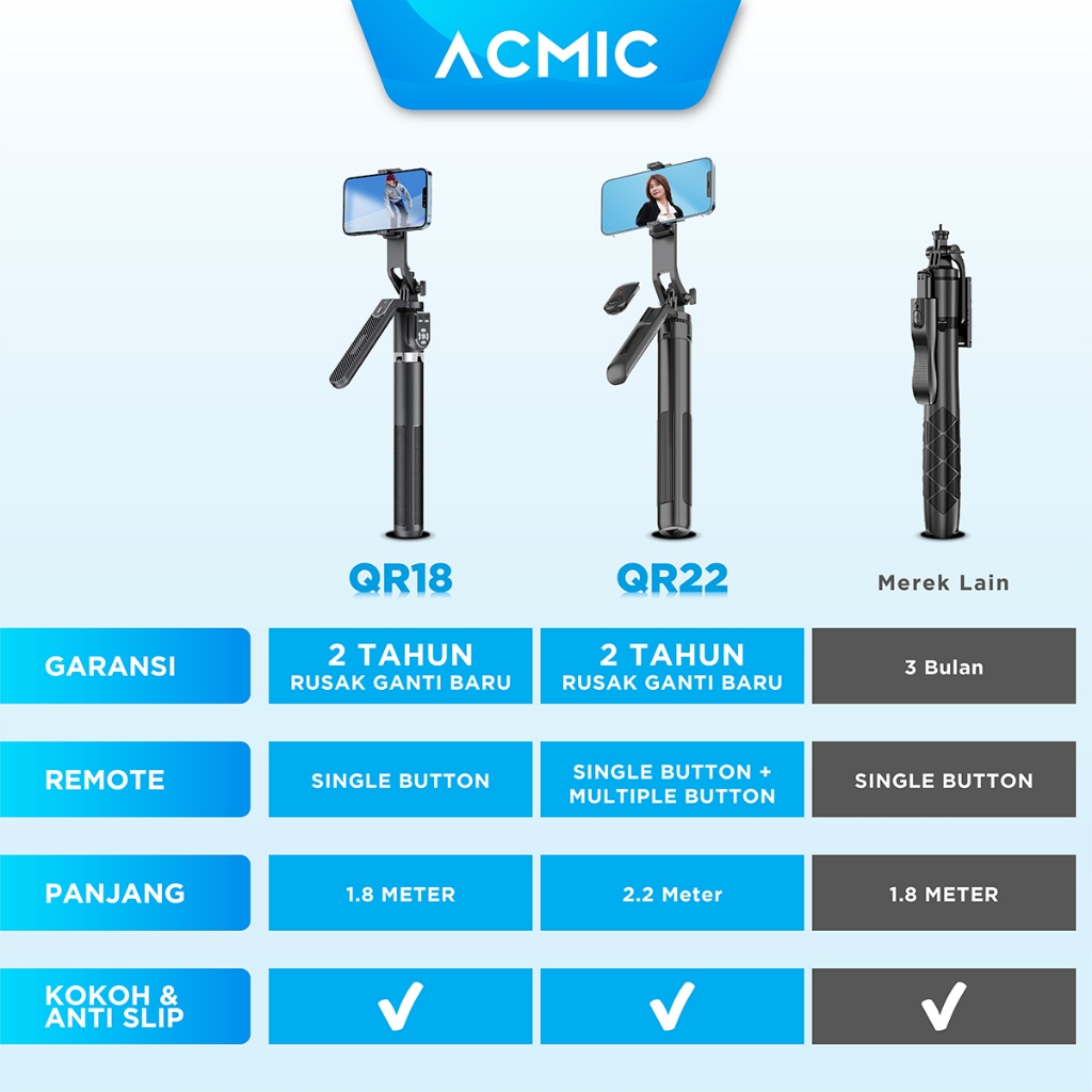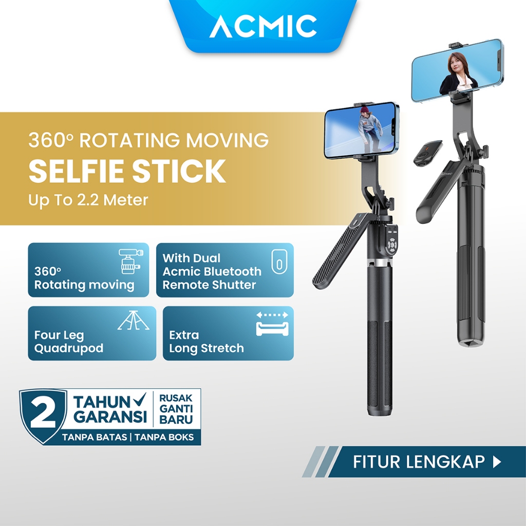 [New Launch] Acmic Qr18 | Qr22 360° Rotating Moving Tongsis Tripod Quadpod 4 Kaki Bluetooth Remote Selfie Stick 1.8M | 2