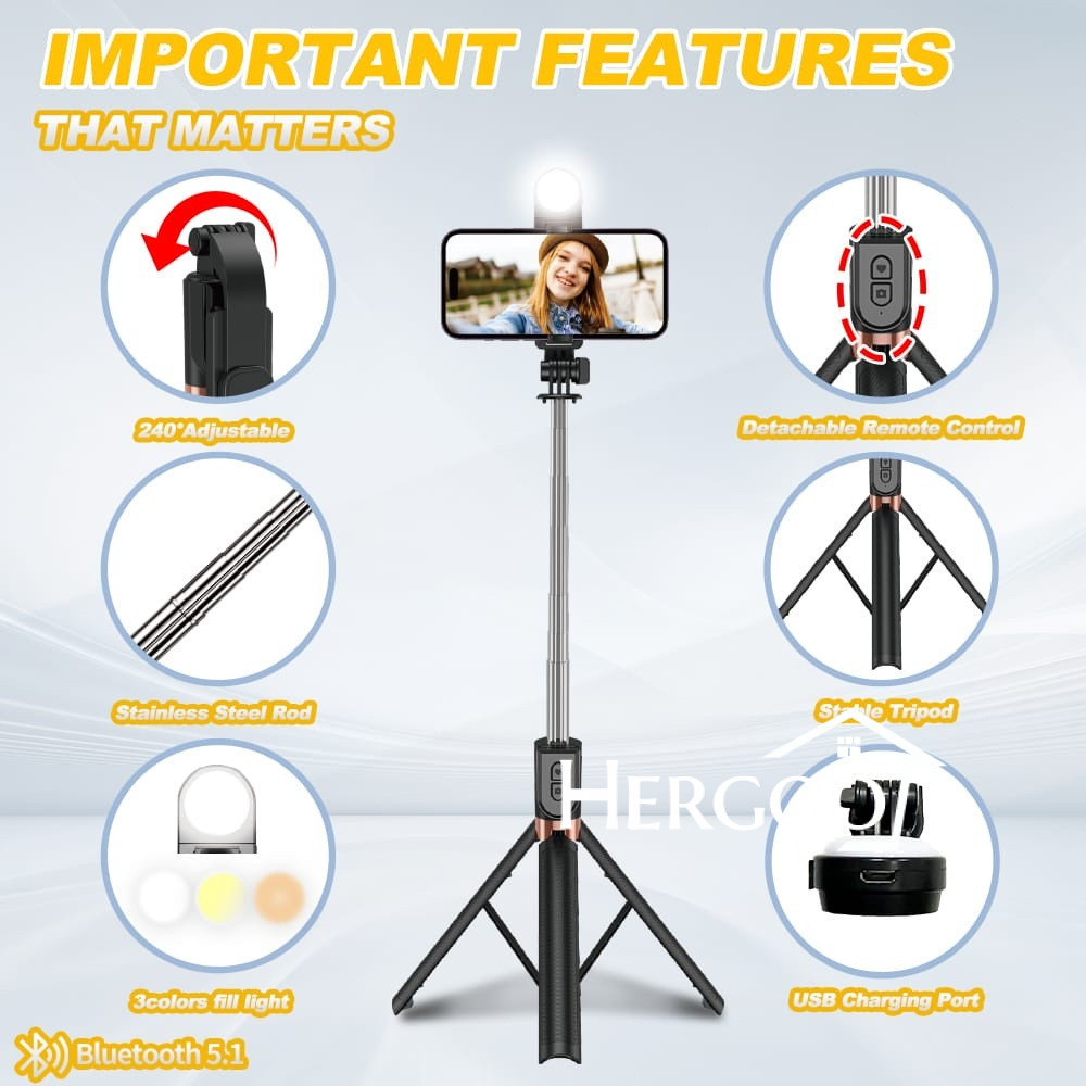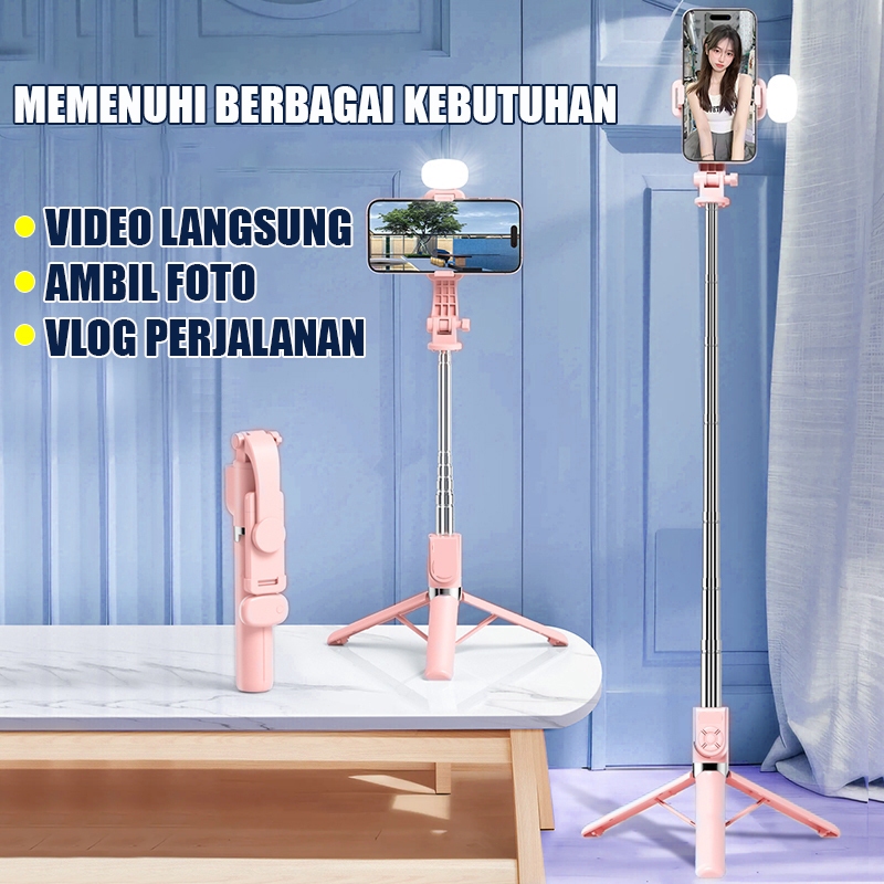 Tinggi 170Cm Tongsis Tripod Bluetooth Selfie Stick 4 In 1 Led Tanpa Lampu Remote Multifungsi Tripod With Fill Light