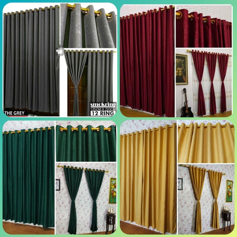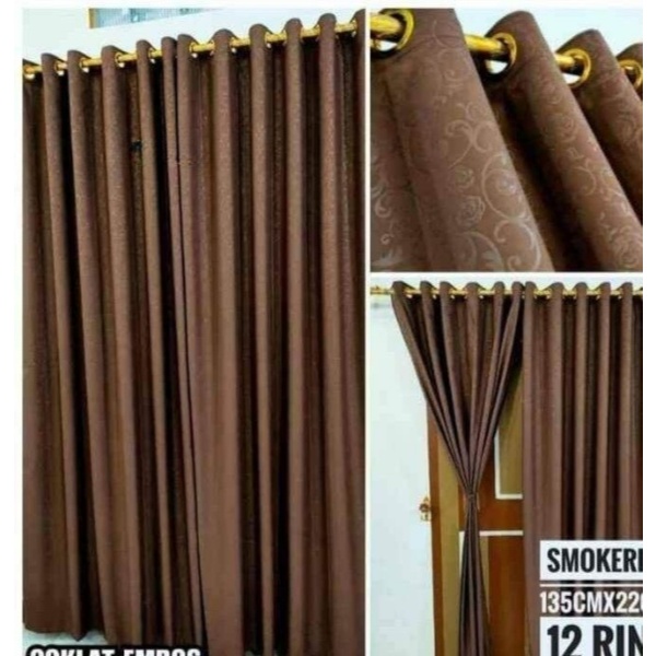 Gorden smokring ring 12 pintu dan jendela gorden embos polos