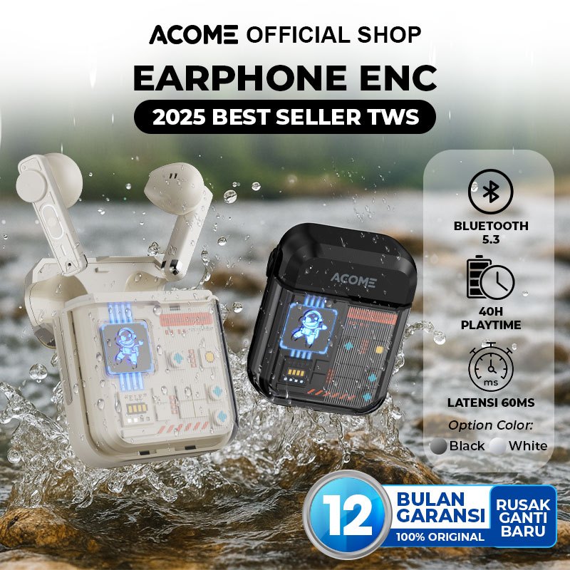 Acome Headset Earphone Tws Bluetooth 5.3 Transparent Low Latency 60Ms Inat06 - Garansi Resmi 1 Tahun