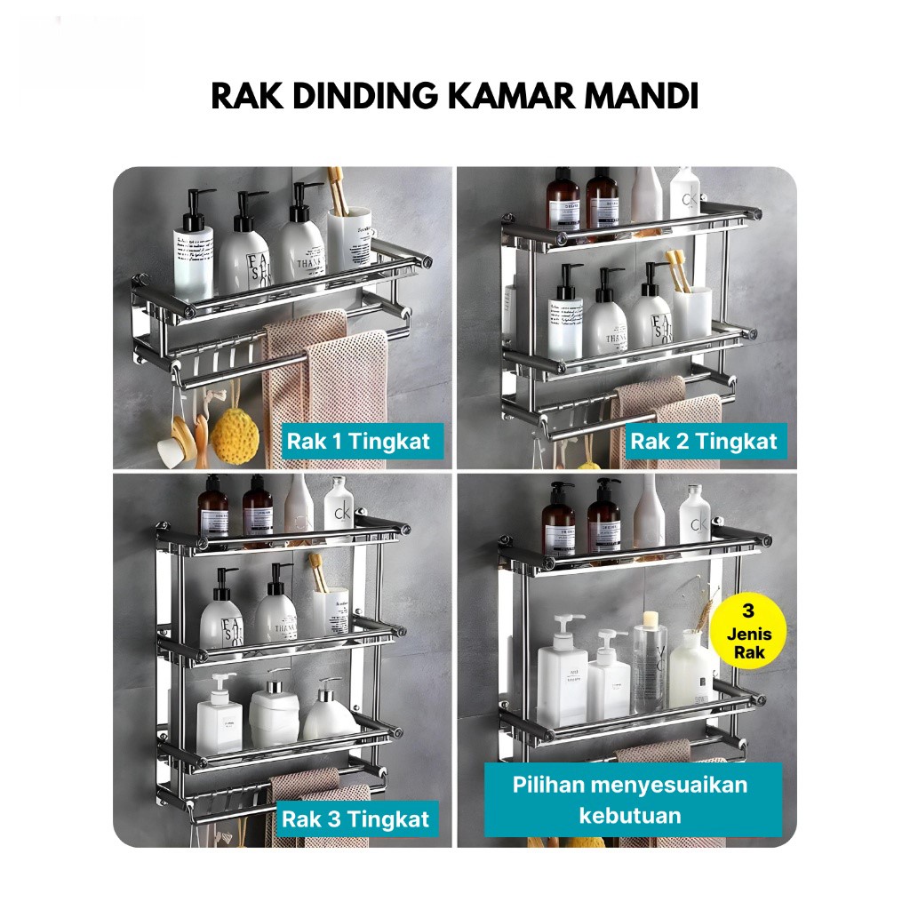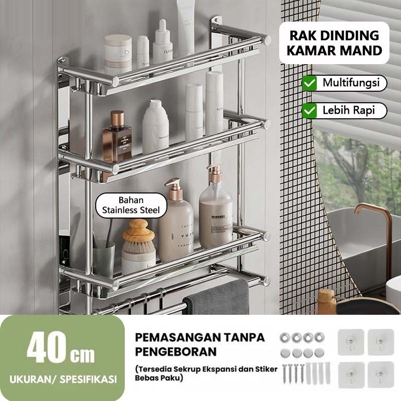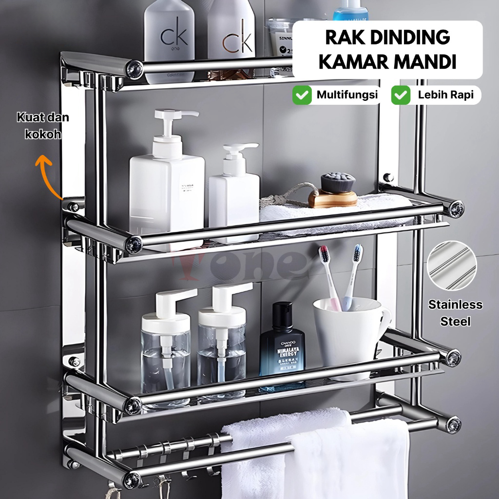 Rak Kamar Mandi kamar mandi rak susun serbaguna tempel Stainless sudut pojok cermin plastik murah dinding gantung