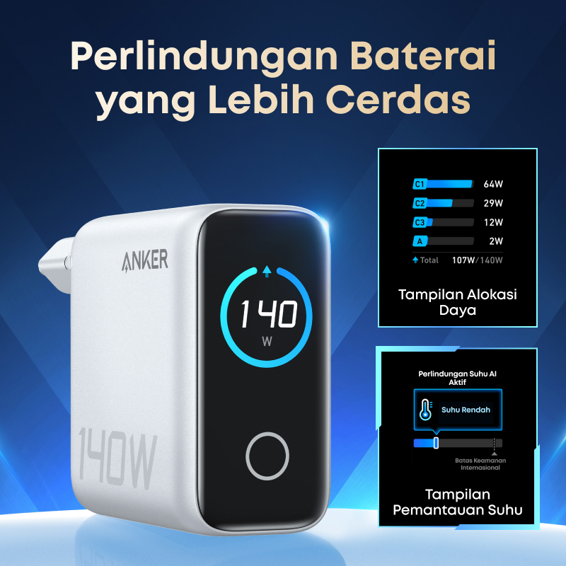 Anker Digital Display 140W Charger With Type C Cable And Powerbank 25.000 Mah 165W Built-In Retractable Cable Gan Fast C
