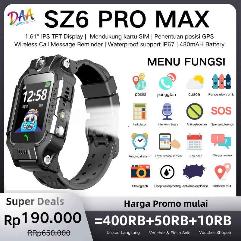 DAA Versi 4G Watch Children cocok untuk 4-16 tahun, mendukung GPS, panggilan dua arah, obrolan suara, jam alarm, kalkulator, senter, SOS dan fungsi lainnya