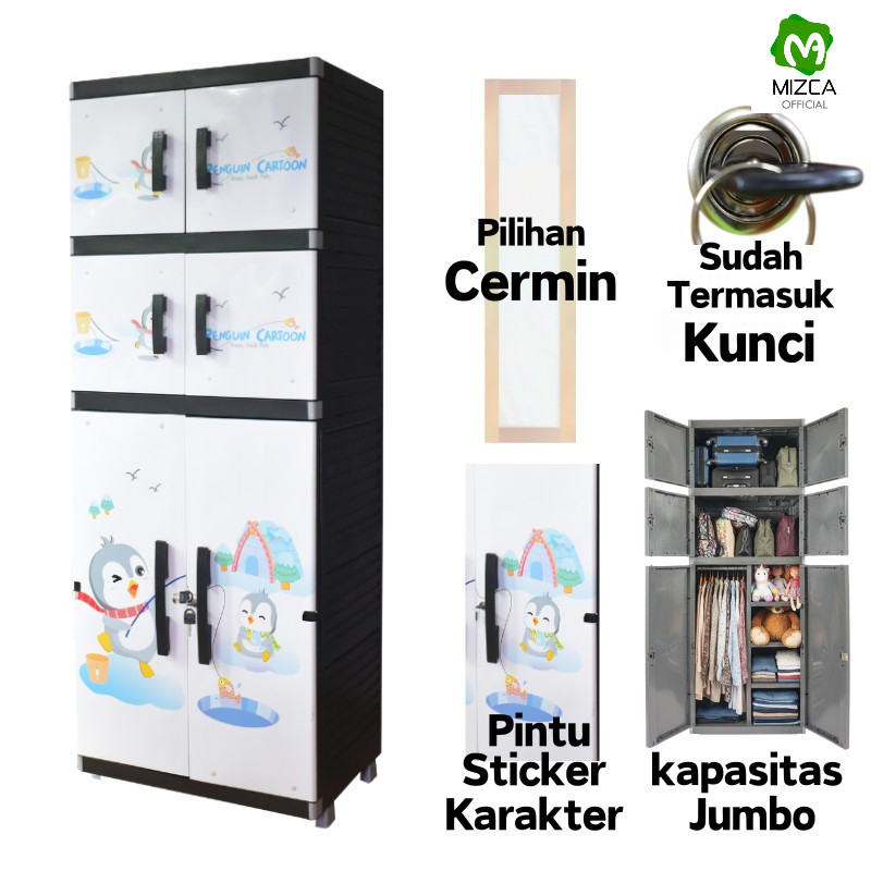 MIZCA Lemari Pakaian Plastik MR PLAS STICKER JUMBO Lemari GANTUNGAN Lemari Susun Cermin Kunci
