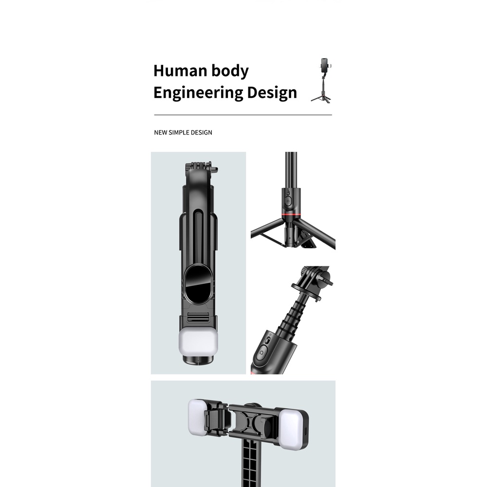 Bestool L12D Tripod Tongsis Selfiestick Bluetooth With Double Fill Light Tripod Hp Aluminum Alloy With Remote Control