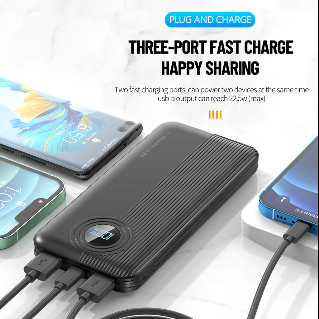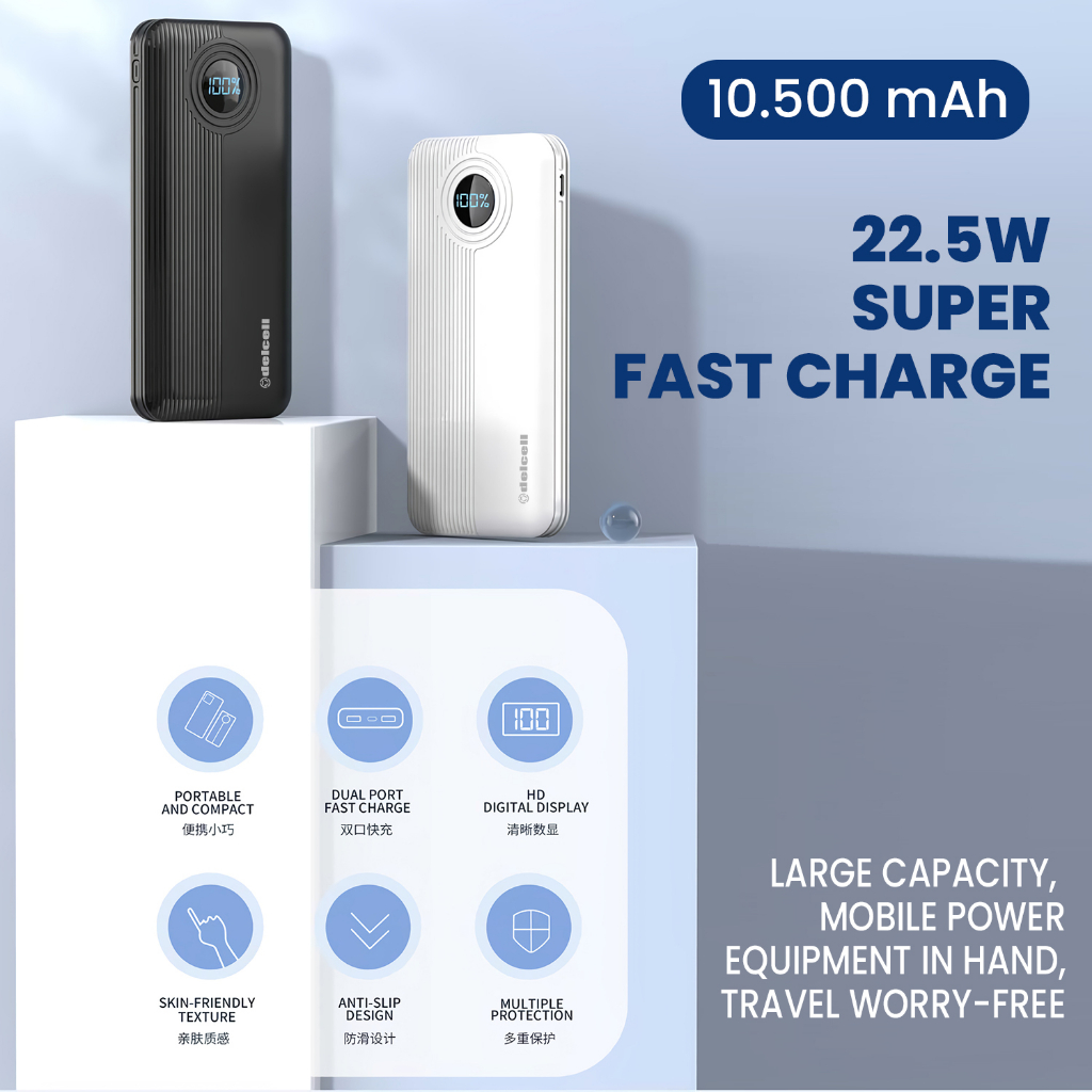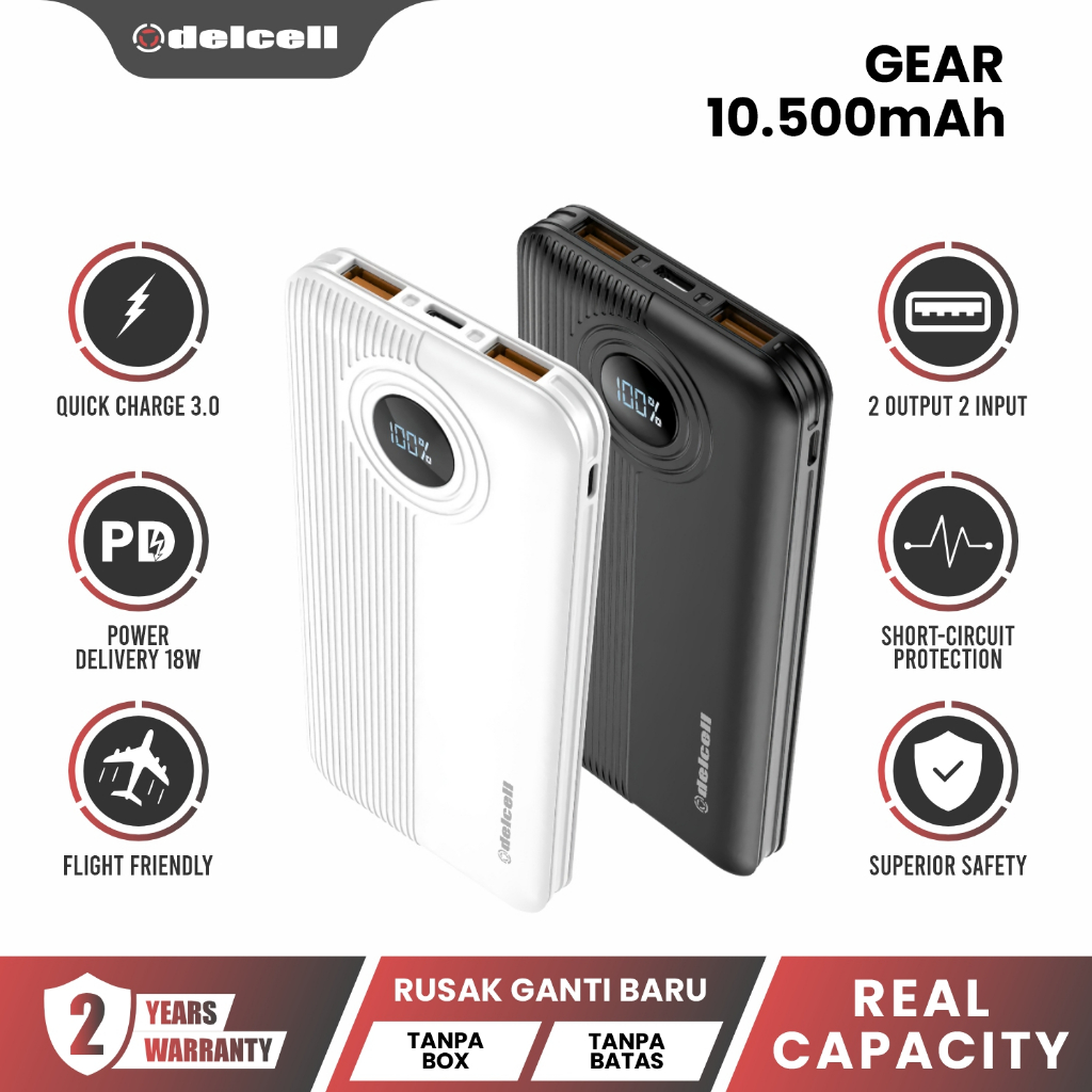 Delcell Gear Power Bank 10500Mah 22.5W Digital Display Qc 3.0+ Pd Real Capacity 2 Tahun Garansi