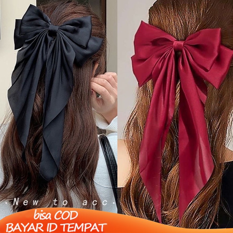 Jepit Rambut Dasi Kupu-Kupu Klip Wanita Korea Ribbon Long Big Bow Hairpin All-match Elegan Temperamen Baik Aksesori Impor Fashion Murah Ready Stock