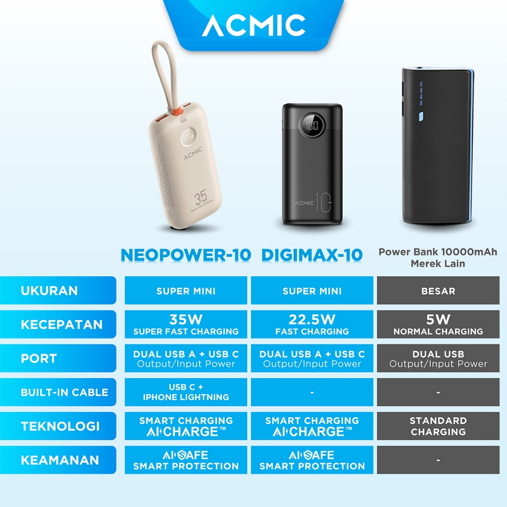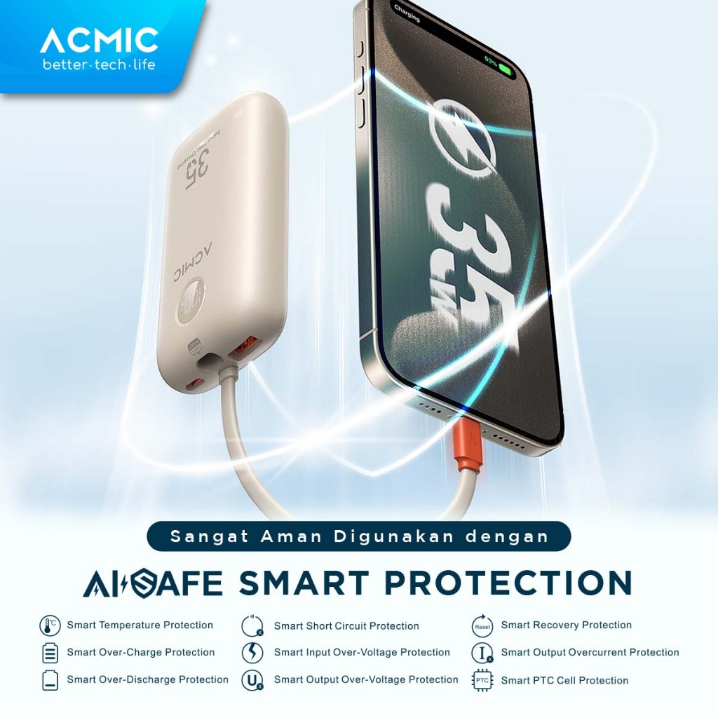 Acmic Neopower Super Mini 35W Power Bank With Super Fast Charging For Samsung Built-In Cable Type C & Iphone Lightning 1