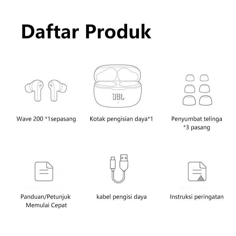JBL Wave 200 True Wireless Deep Bass Sound Earbuds In-Ear Headset Bluetooth ,Water & Dust Resistant, Up to 15 hours of battery life Headphone With Microphone For Android & IOS Earphone Gaming