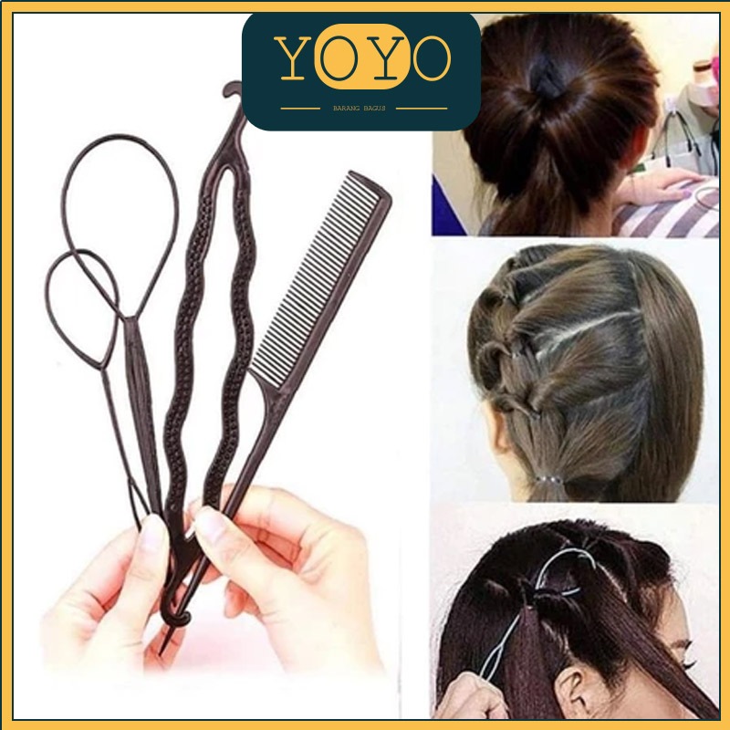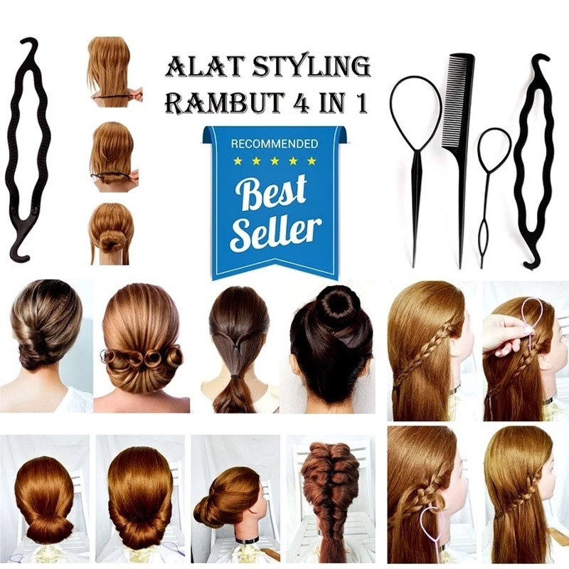 Set Sisir Rambut Salon Hair Braid 4in1 Sisir Styling Rambut 4 in 1 Alat Styling Sanggul Konde Kepang Rambut