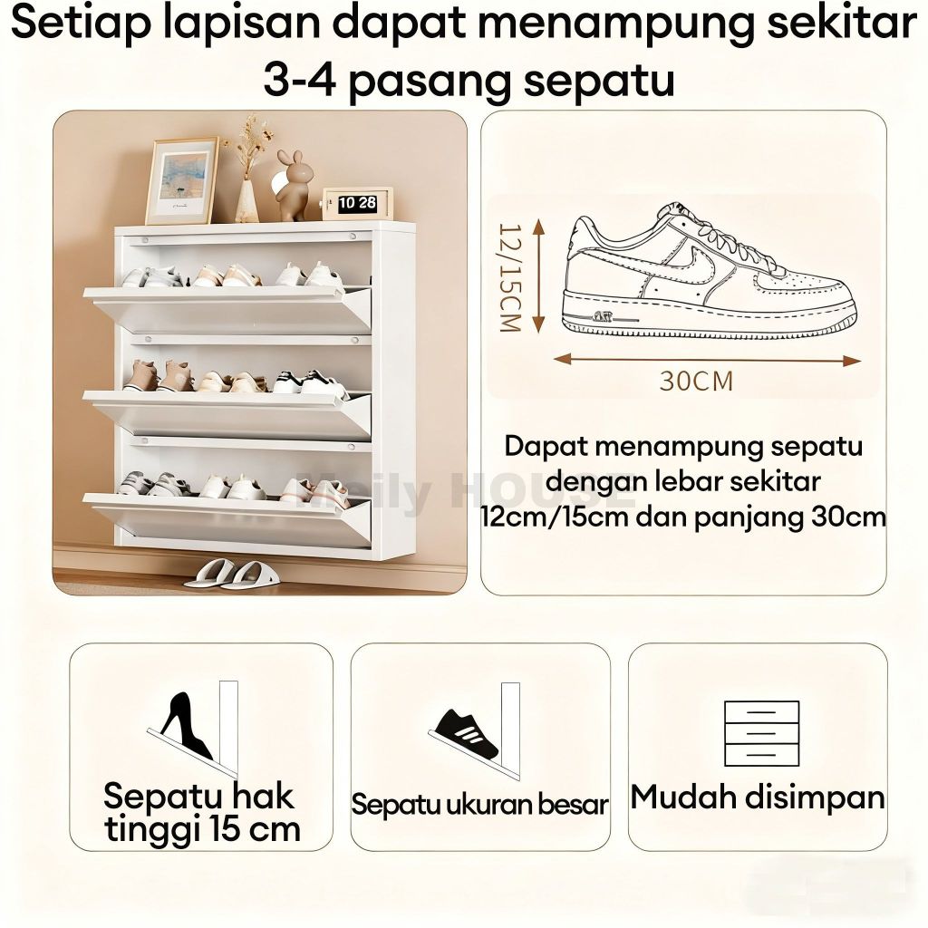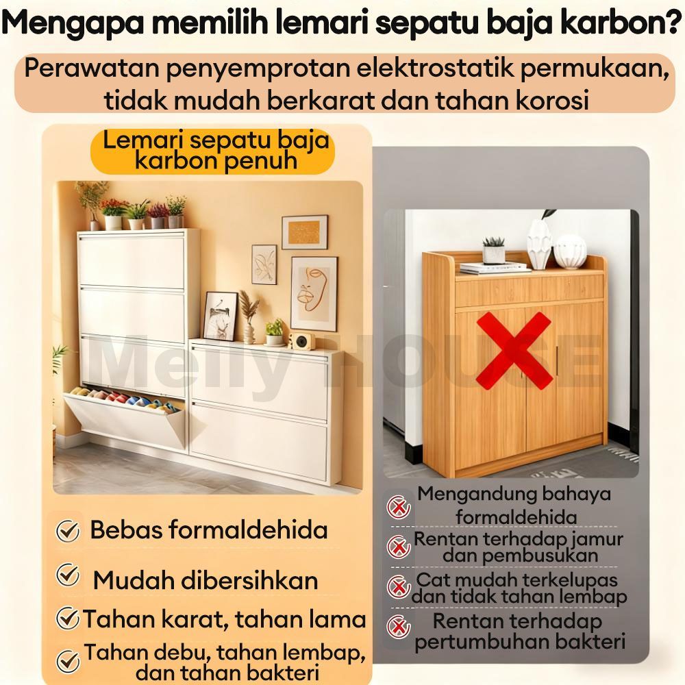 Lemari Sepatu/Rak Sepatu/Rak Sepatu Susun Besi/Mencegah debu/Hemat Ruang/Hitam dan Putih