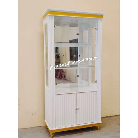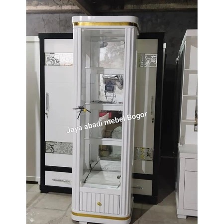 lemari pajangan ruang tamu Lemari pajangan kristal 4pintu oval multiplek finishing cat Duco khusus Jabodetabek TERLARIS