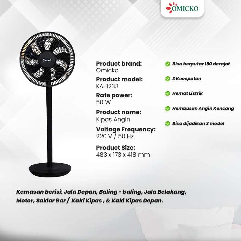 Kipas Angin Omicko 12 Inch – 3in1 Multifungsi Meja, Lantai, Berdiri + Garansi 1 Tahun