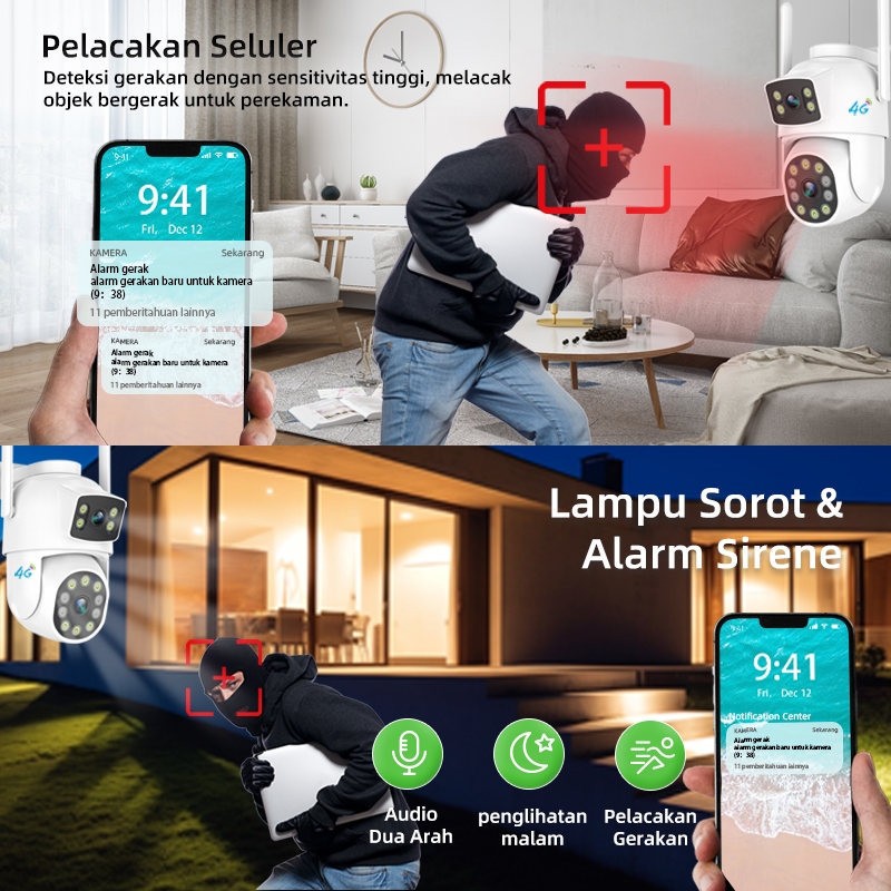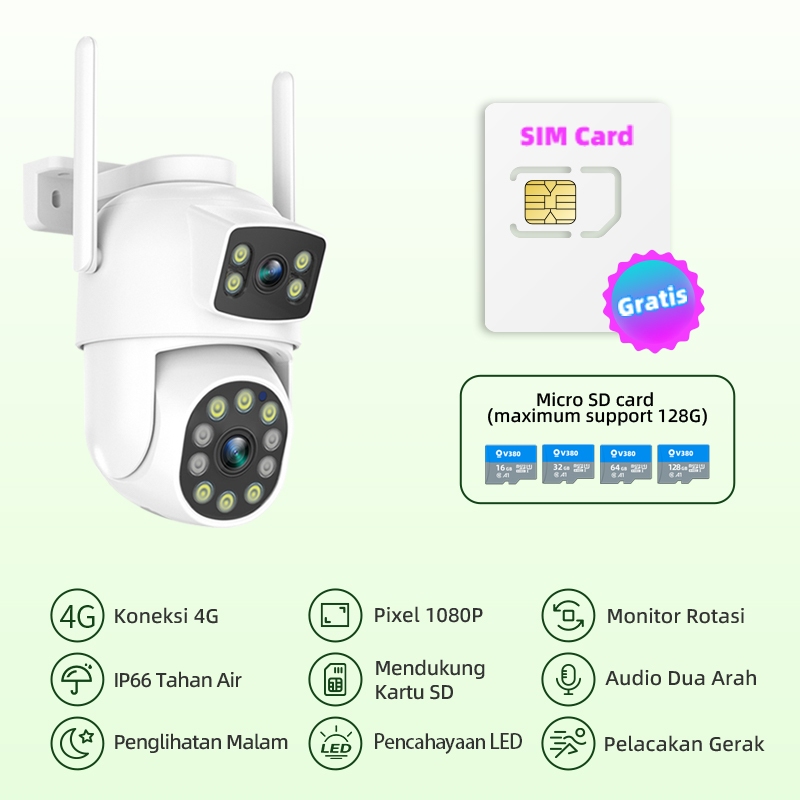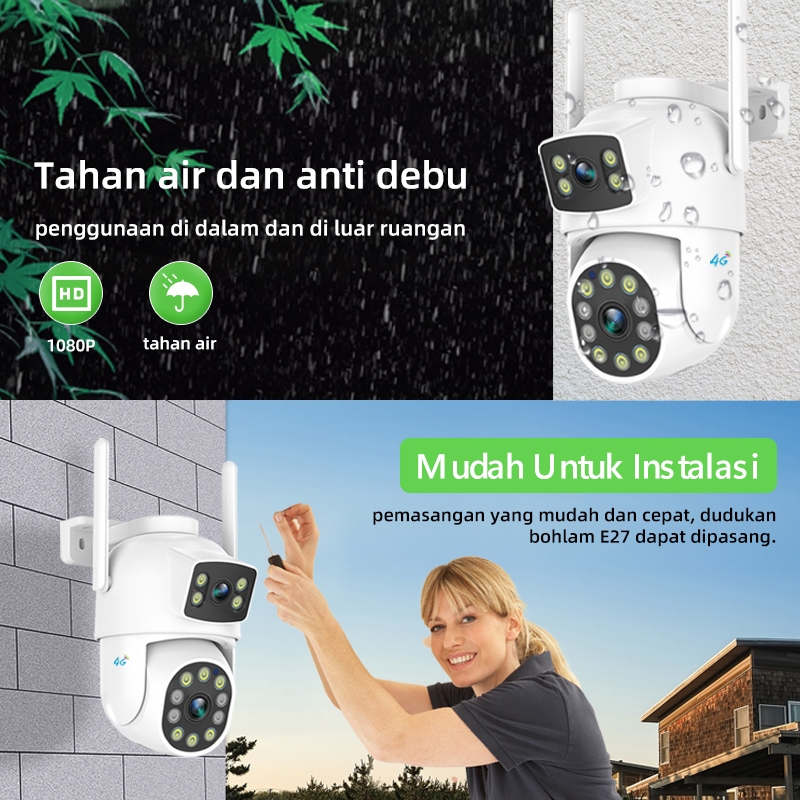 Cctv 4G Dual Lens Outdoor Tanpa Wifi 1080P Tahan Air Mudah Pasang Pantau Hp Malam Jelas Gratis Sim