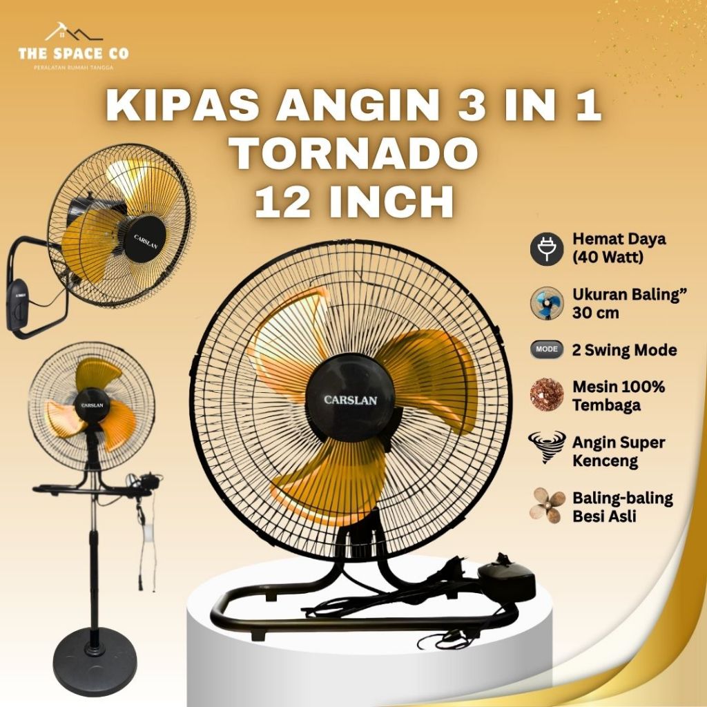Kipas Angin Besi Tornado Jumbo Duduk Dinding Berdiri 12 Inch 3in1 Hemat Daya Angin Kencang