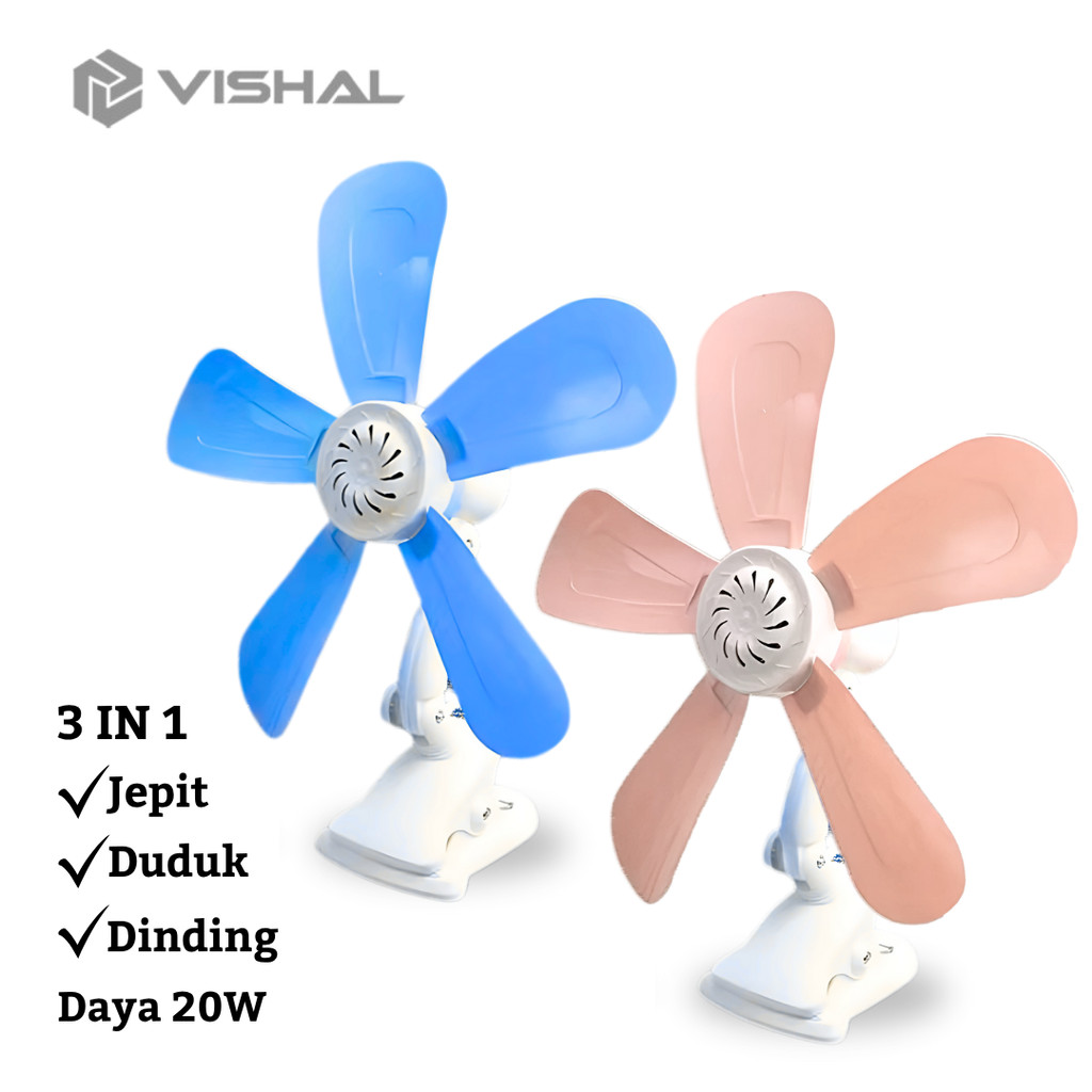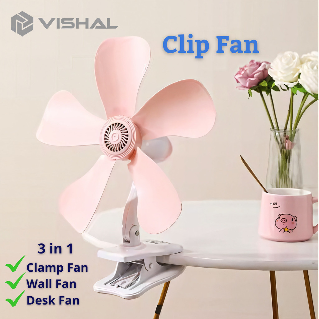 VISHAL Kipas Clip Fan 220V Kipas Angin Multifungsi 3in1/ Dijepit, Digantung atau Diletakkan, Angin Sejuk dan Stabil