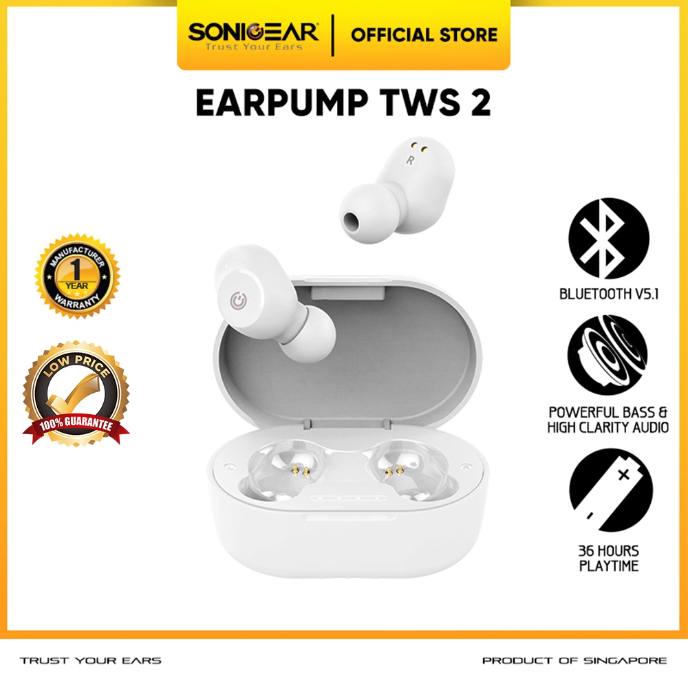 Earphone Bluetooth Sonicgear Earpump Tws 2 Earbuds Wireless Terbaik 2022 | Powerful Bass | Low Latency
