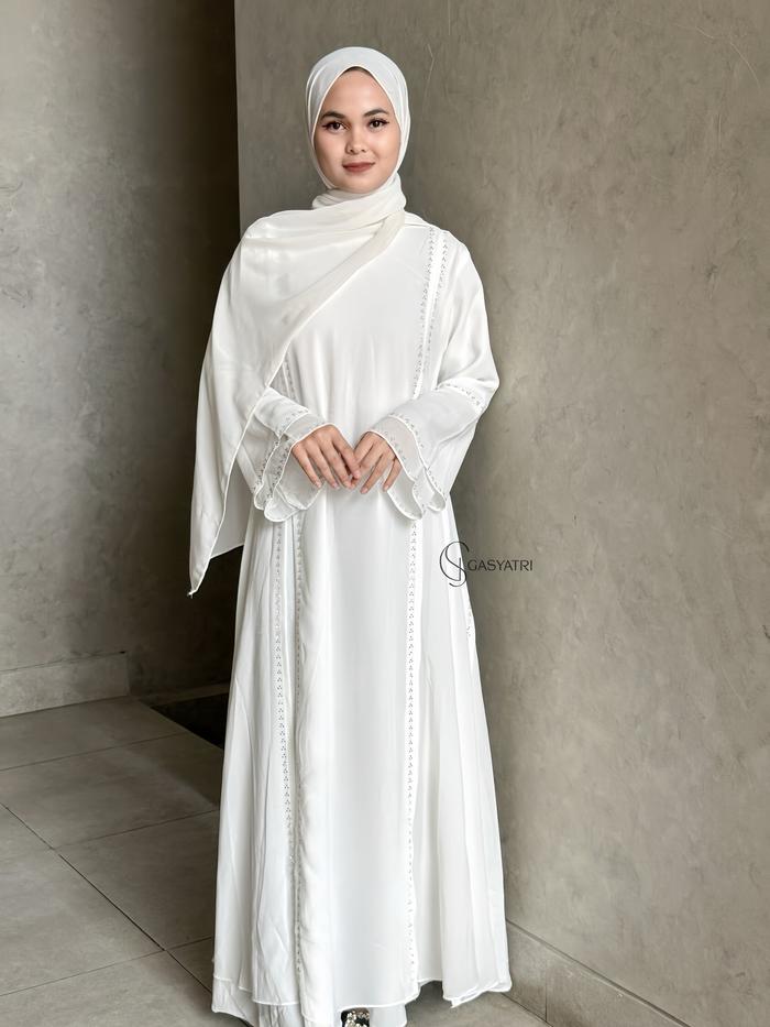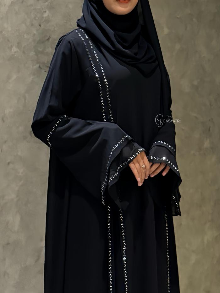 Zavieer Abaya Gasyatri Turkey Syari Hitam Jetblack Mix Ciffon Putih Umroh Akad Payet Mata Mewah Remaja Gamis Muslim - Bl