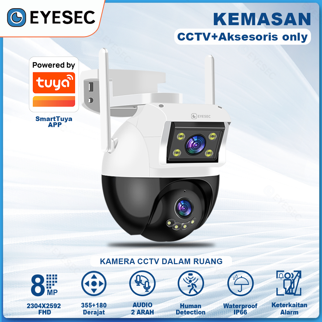 Eyesec Cctv Wifi 8Mp Outdoor Dual Lens Waterproof Ip Camera 360° Ptz Kamera Hp Jarak Jauh Garansi 1 Tahun