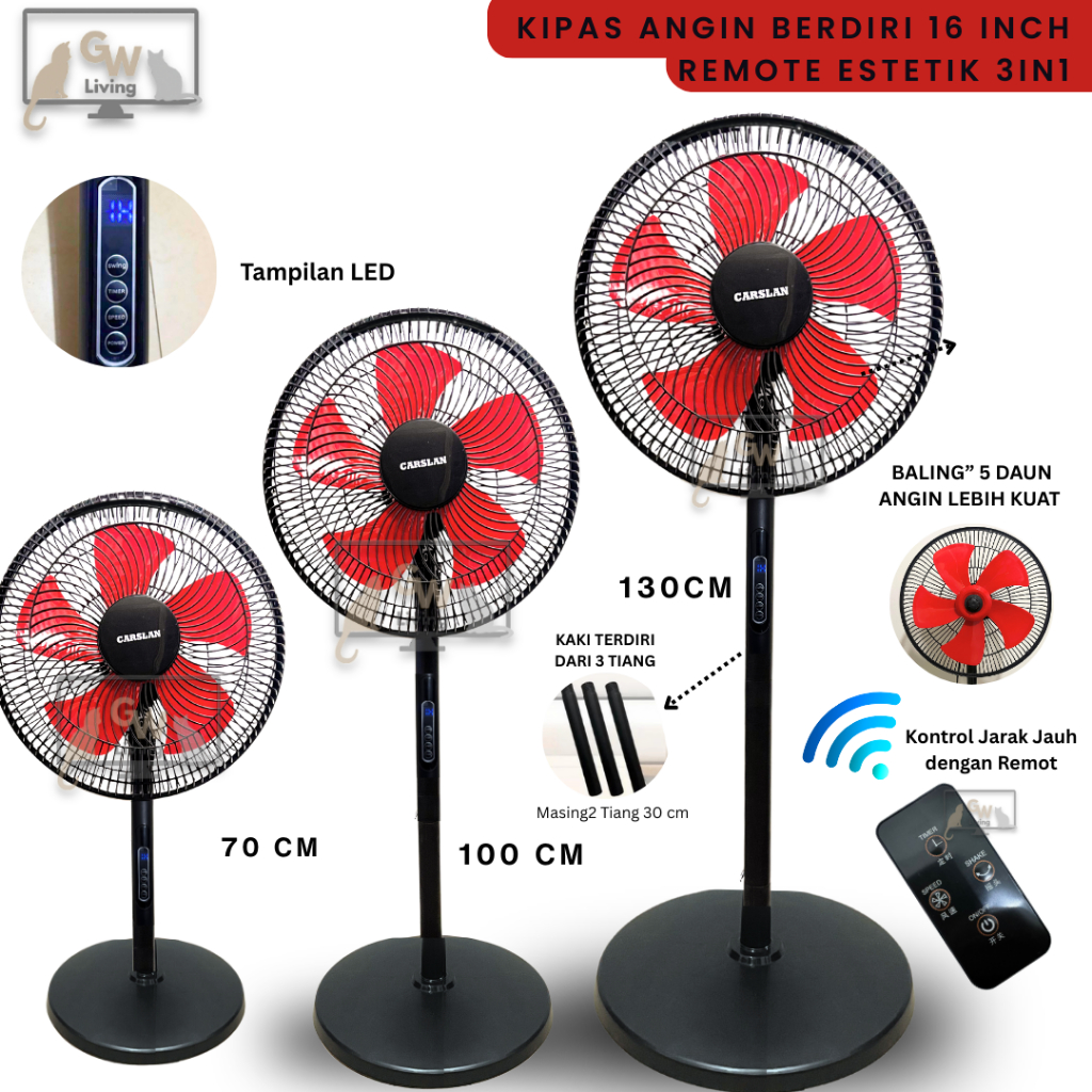 Kipas Angin Berdiri / Stand fan 16 Inch Estetik 5 Baling Kencang Jumbo Remot Timer Hemat daya