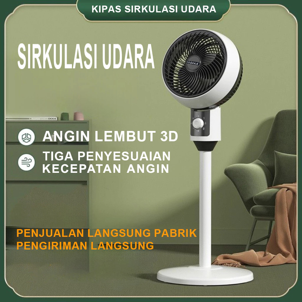 YASAKA【DUAL FAN】Kipas Angin + Kipas Lantai - Auto Swing 90° & Manual Vertikal 3 Level Hemat Listrik