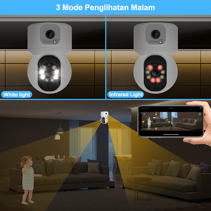 CCTV Indoor WiFi 8MP Dual Lens IP Camera 360° PTZ Kamera HP Jarak Jauh