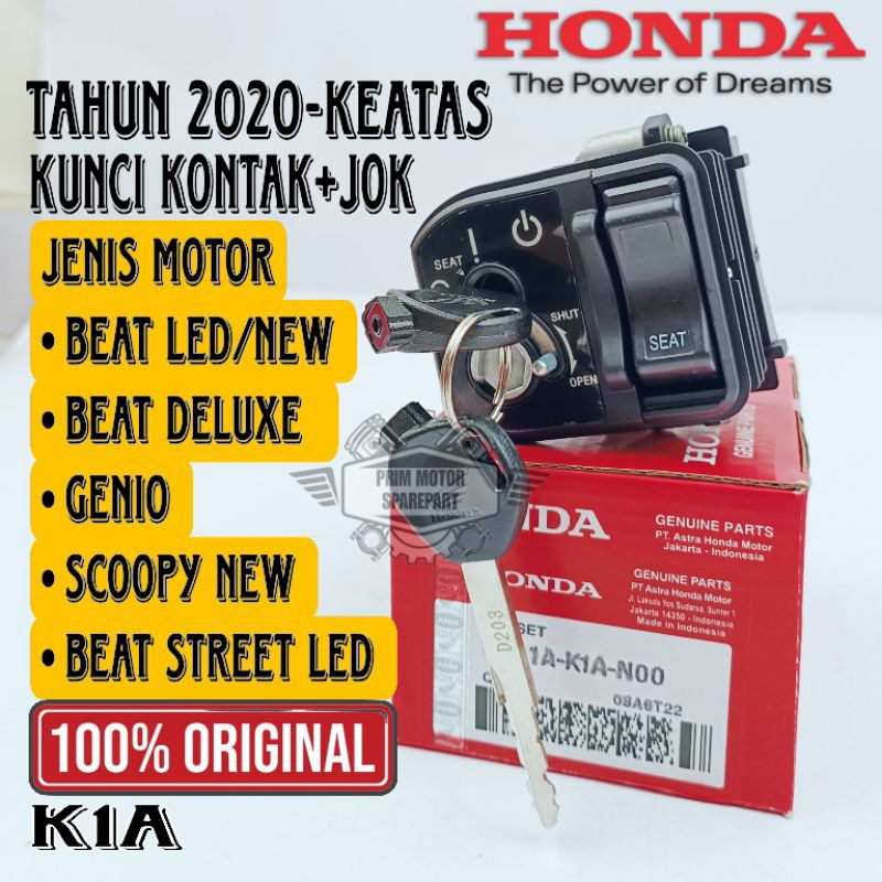 ORIGINAL KUNCI KONTAK+JOK K1A HONDA BEAT DELUXE, BEAT NEW LED, SCOOPY NEW, BEAT STREET NEW, GENIO KUALITAS 100 PERSEN ASLI HONDA AHM