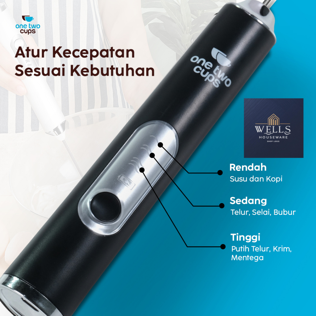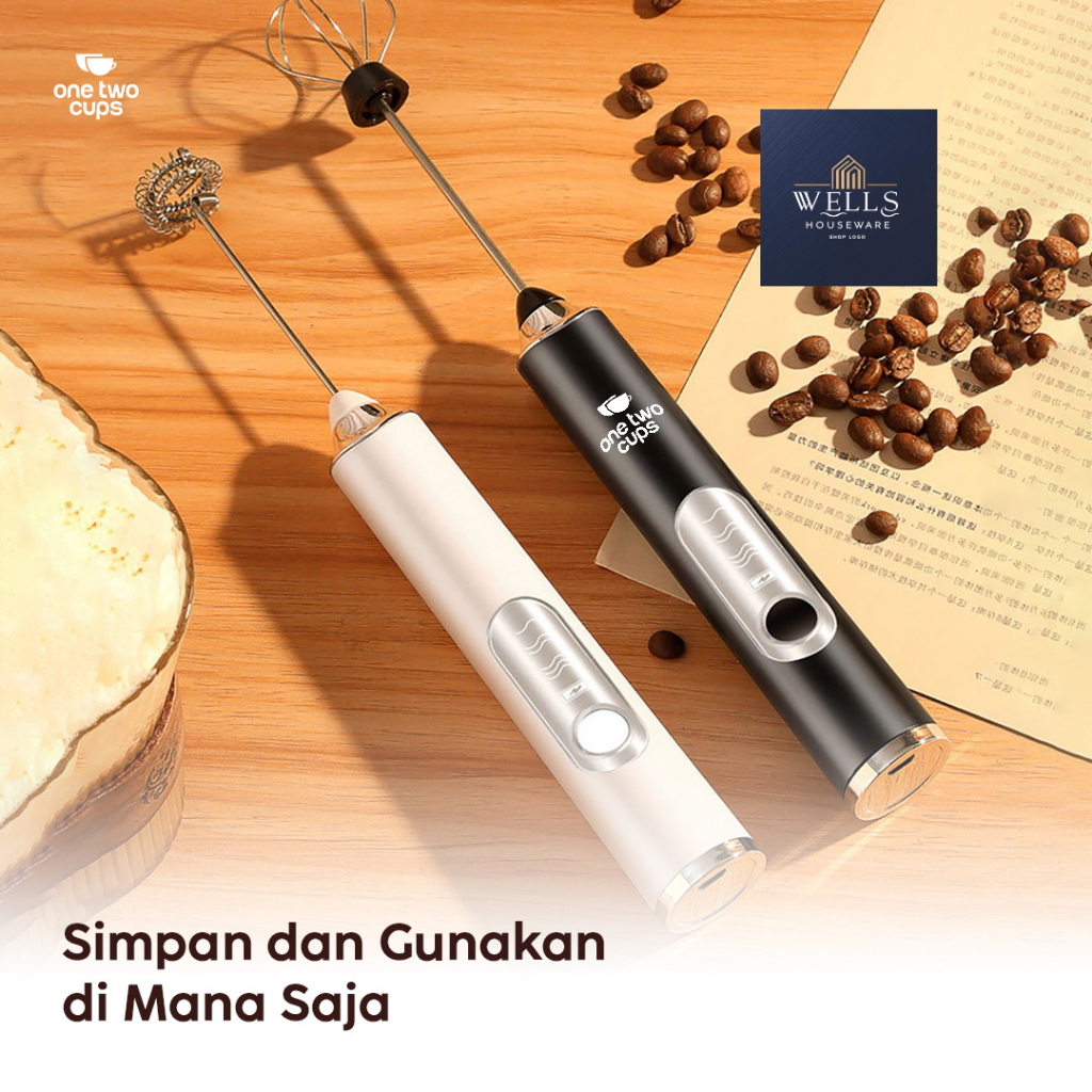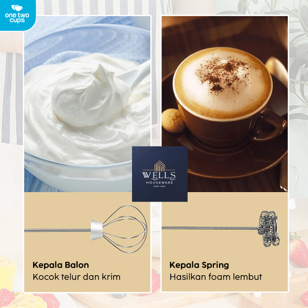 Wells Houseware - One Two Cups Hand Mixer Mini 2in1 Pengocok Telur Whisk Milk Frother - HM23