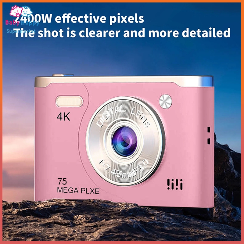 TEEKA 64GB 4K 75MP Kamera Digital Portabel Kecil Layar IPS Zoom 16X Kamera Mini Deteksi Wajah untuk Siswa