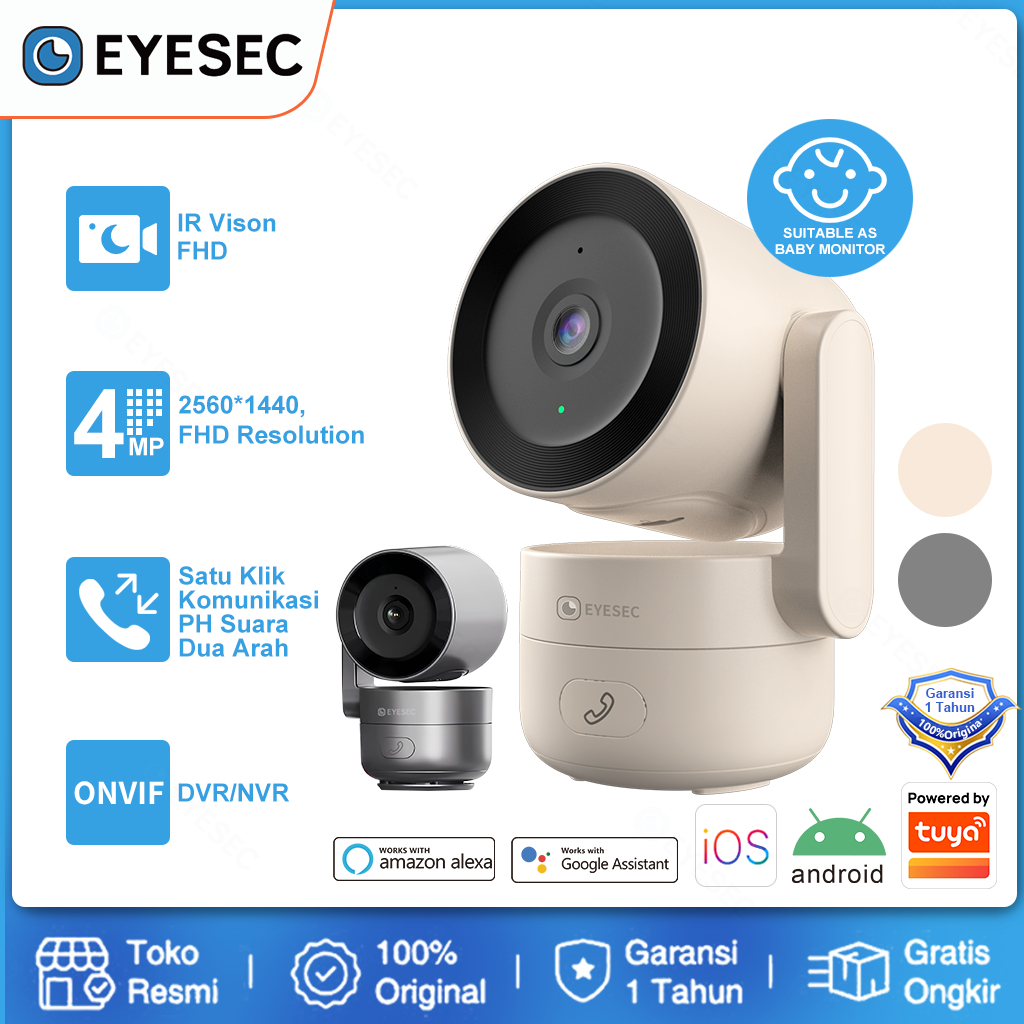 Eyesec Es08 Cctv Indoor 3Mp Wifi Camera Klik Satu Tombol Untuk Videocall Ke Hp 3X Zoom Optik