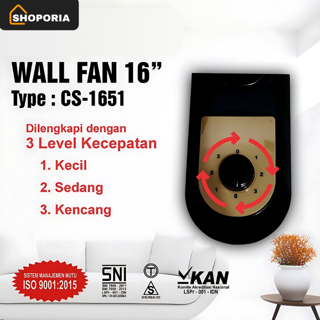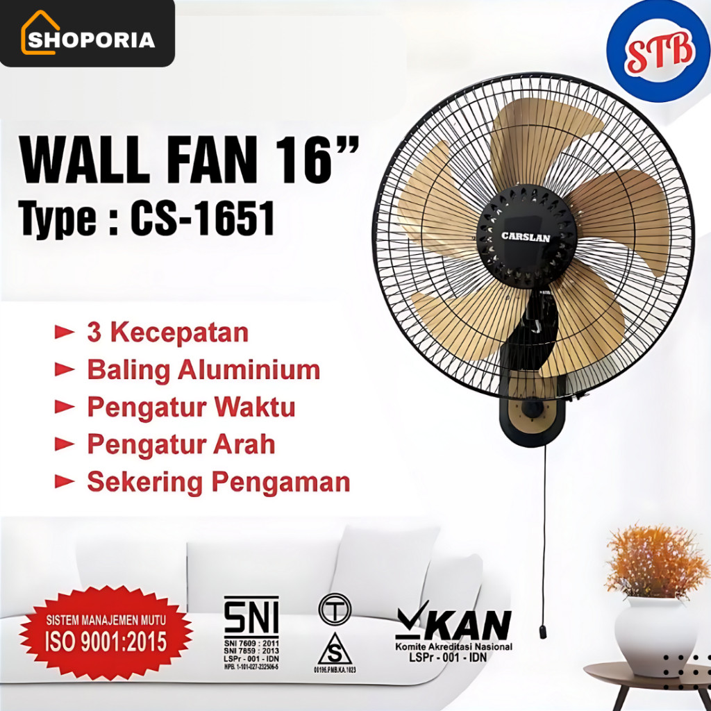 CARSLAN Kipas Angin Tornado Besi Wallfan Kipas Dinding 16inch CS-1651